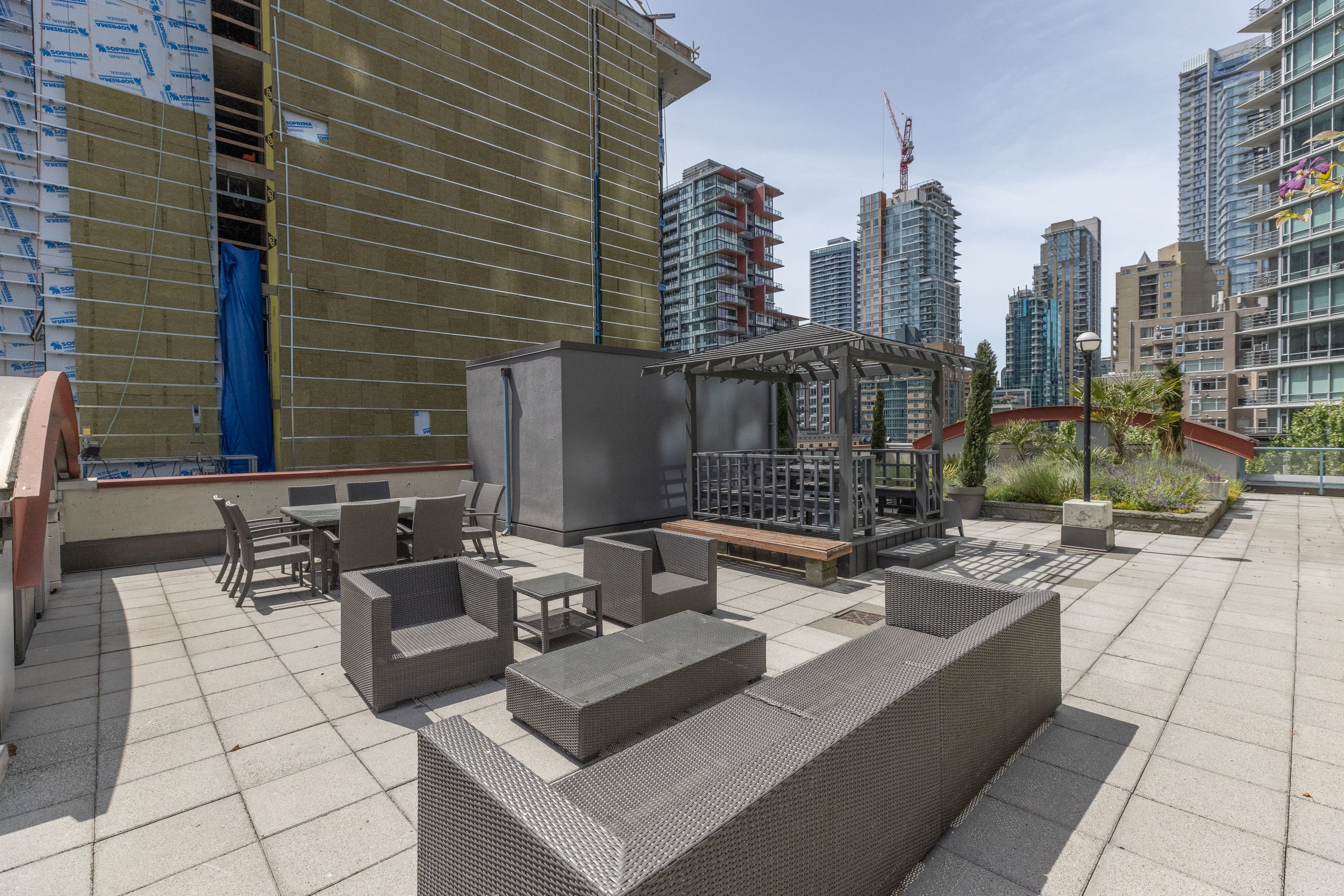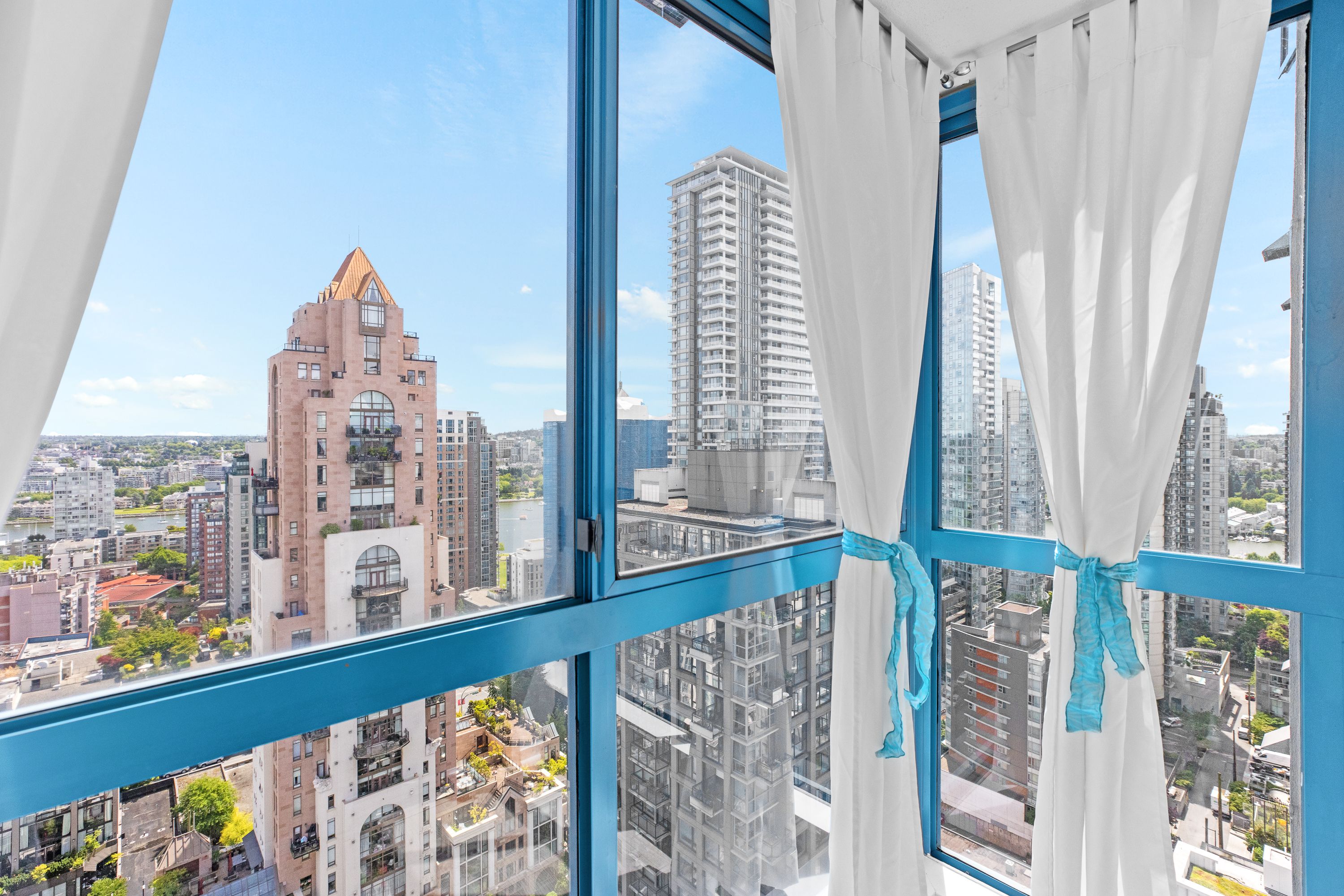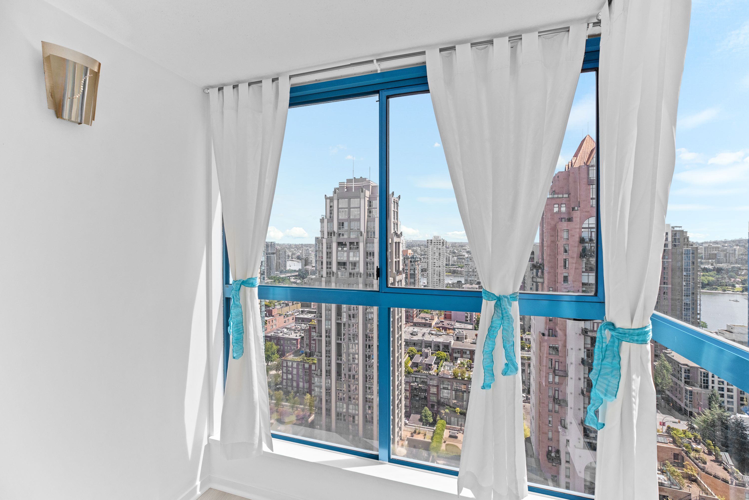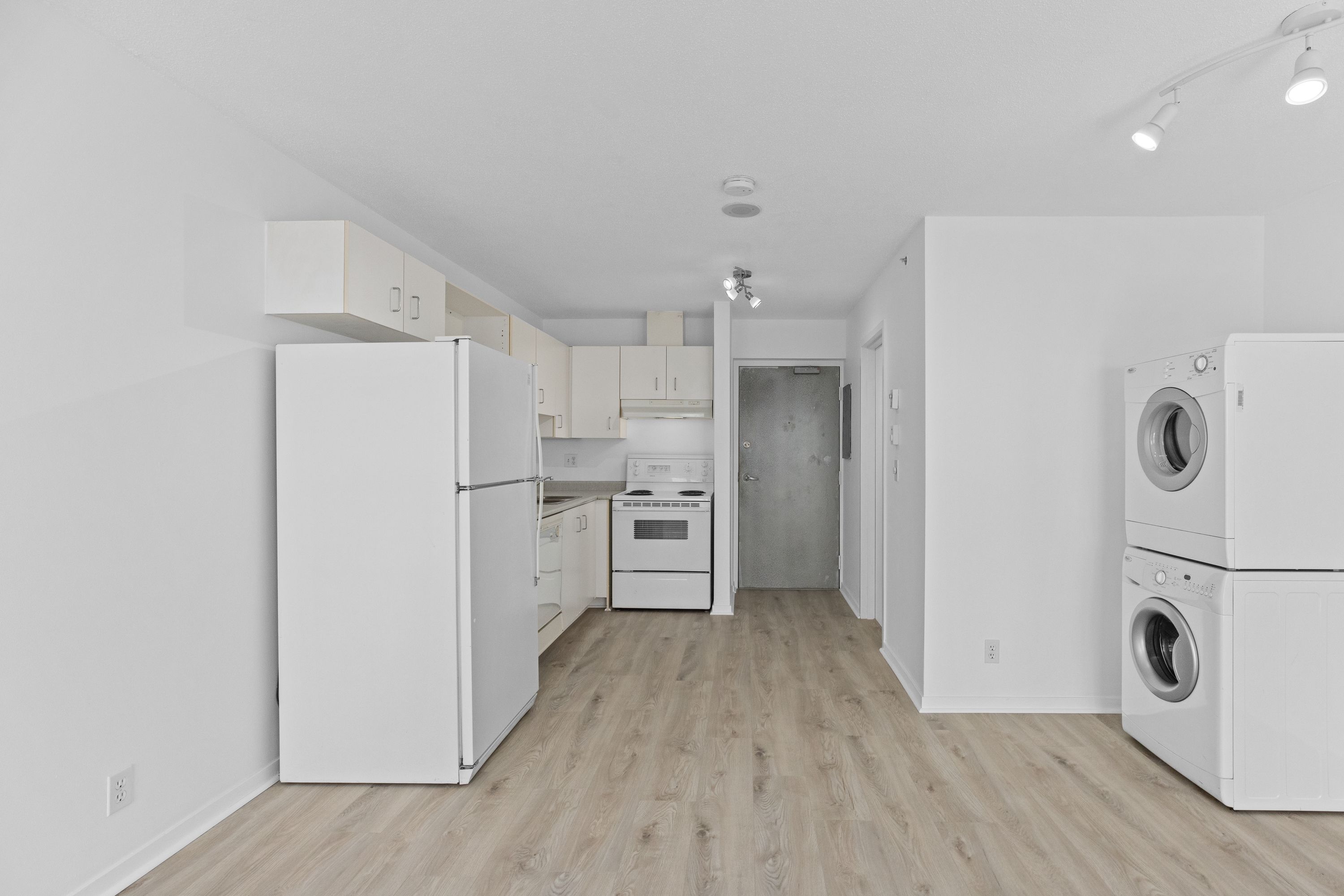 Rarely available studio located in the iconic Space building! Stunning (equivalent to 27th floor) unobstructed panoramic city and ocean views. Turn-key ready for 1st time home buyers and investors wanting easy rental income in a vibrant, trendy neighbourhood. Great room includes plenty of storage with a kitchen complete with fridge, stove and dishwasher. Renovated just a week ago with freshly painted walls and beautiful new flooring. Enjoy summer lifestyle just steps away from the seawall and transit. Wake up feeling rejuvenated in a quiet building with plenty of natural lighting.