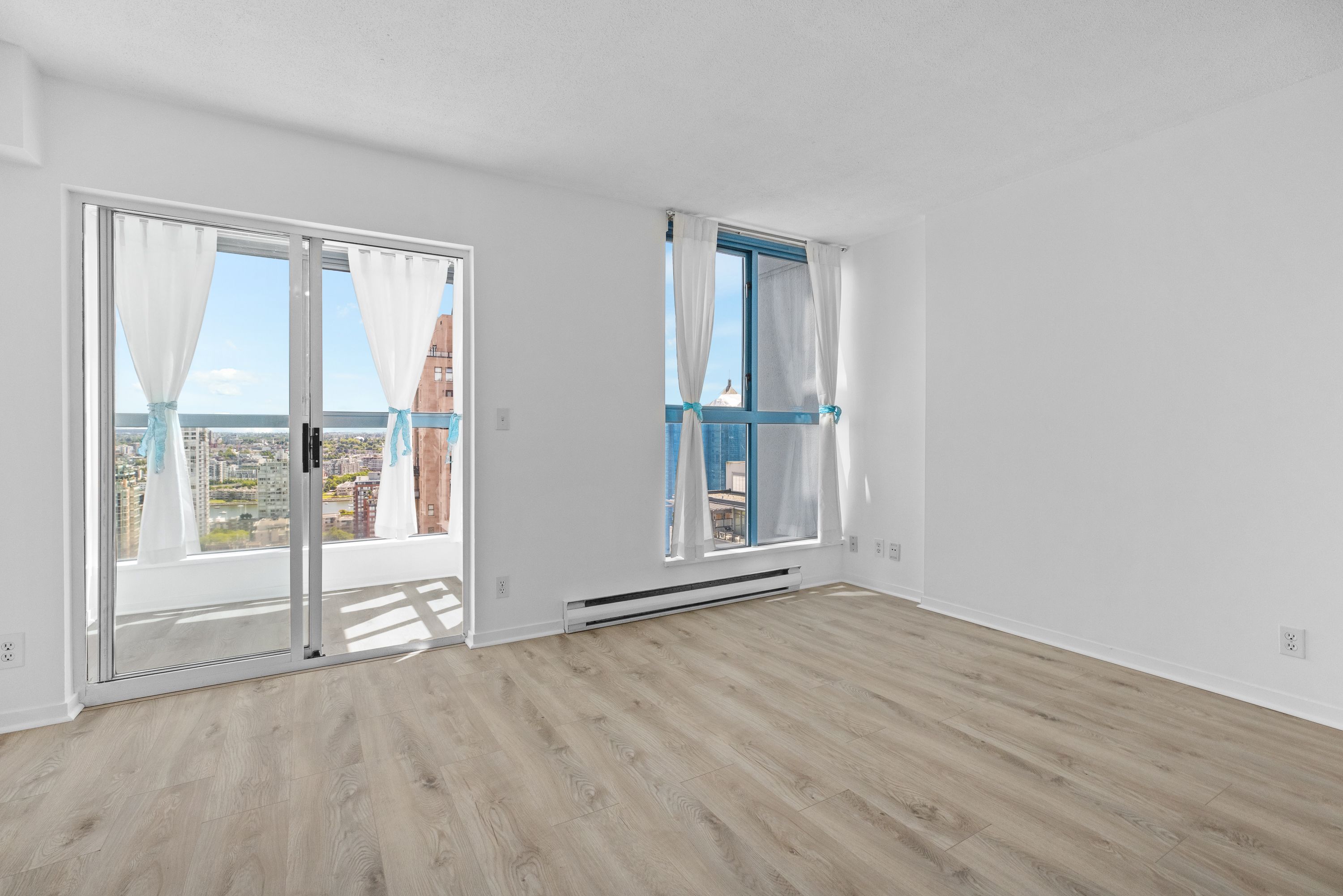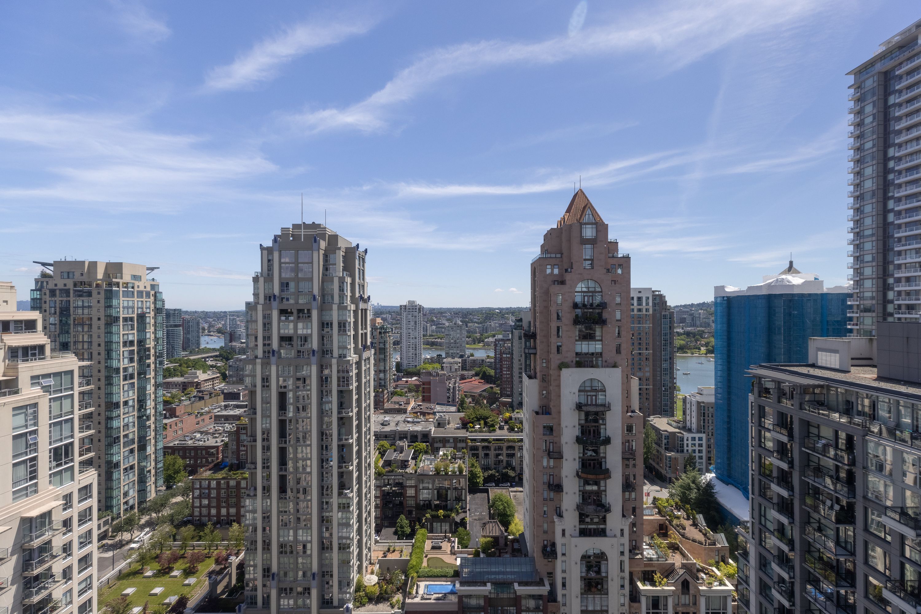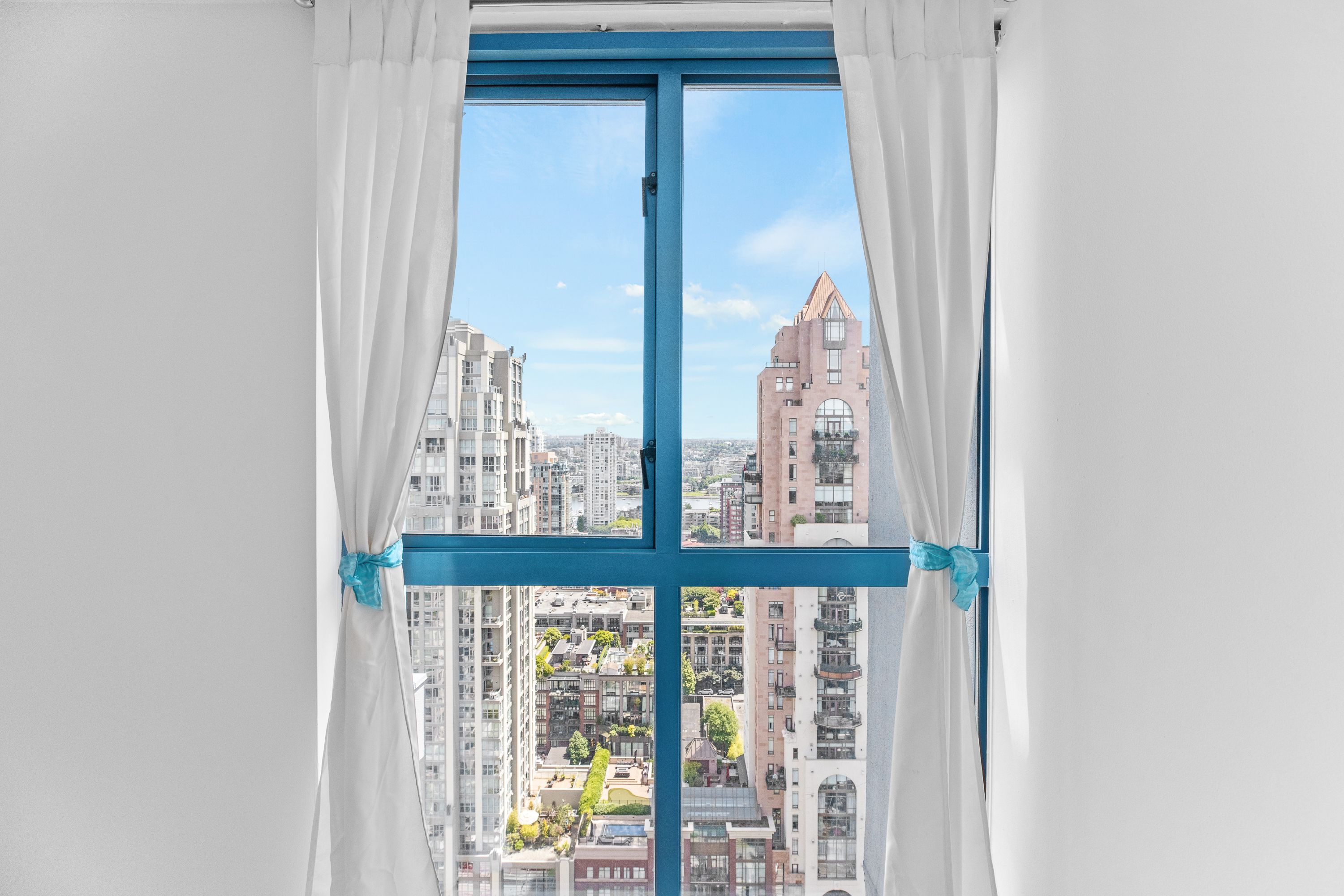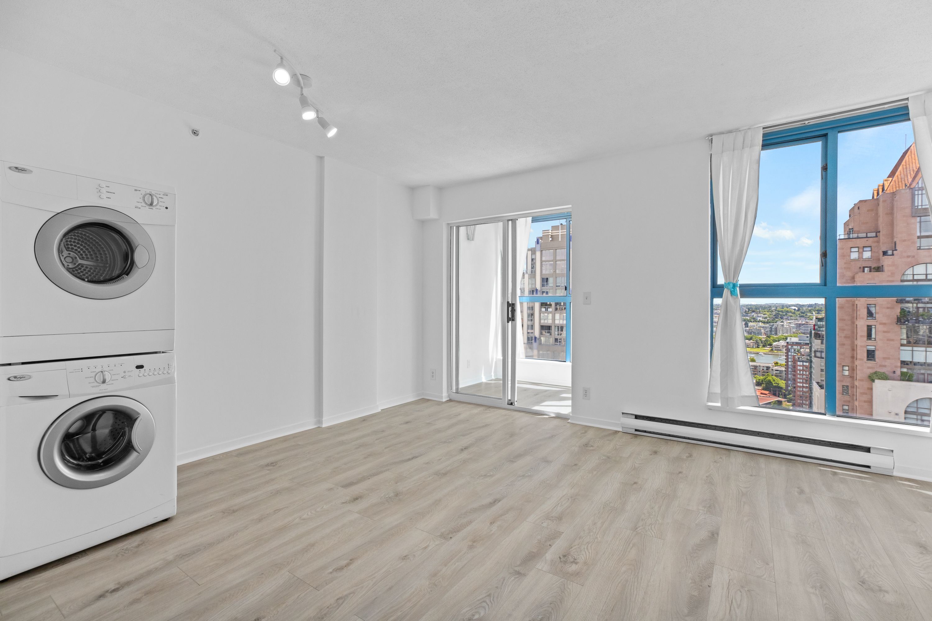 Rarely available studio located in the iconic Space building! Stunning (equivalent to 27th floor) unobstructed panoramic city and ocean views. Turn-key ready for 1st time home buyers and investors wanting easy rental income in a vibrant, trendy neighbourhood. Great room includes plenty of storage with a kitchen complete with fridge, stove and dishwasher. Renovated just a week ago with freshly painted walls and beautiful new flooring. Enjoy summer lifestyle just steps away from the seawall and transit. Wake up feeling rejuvenated in a quiet building with plenty of natural lighting.