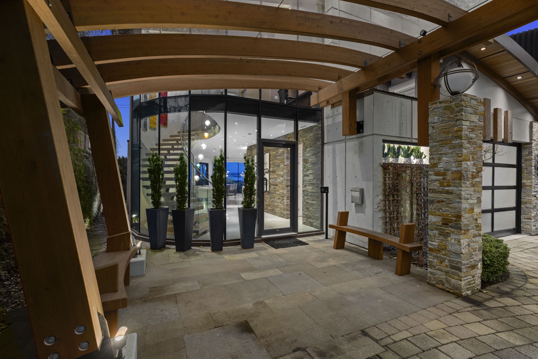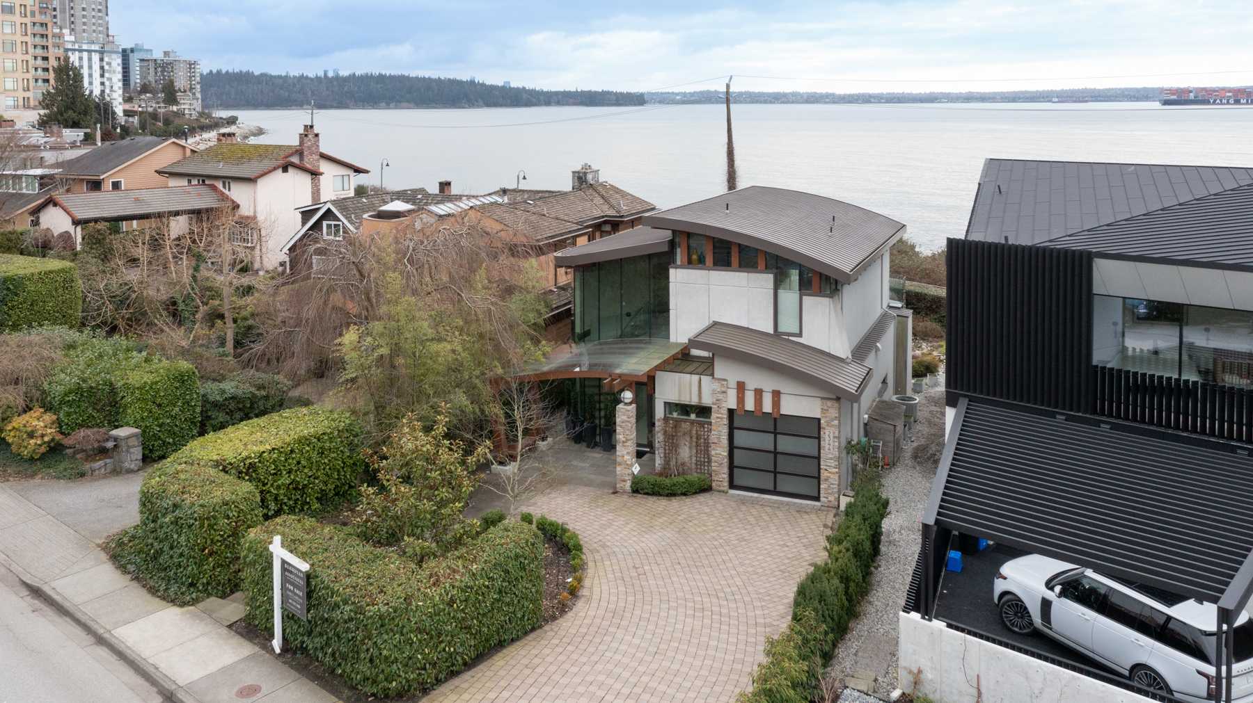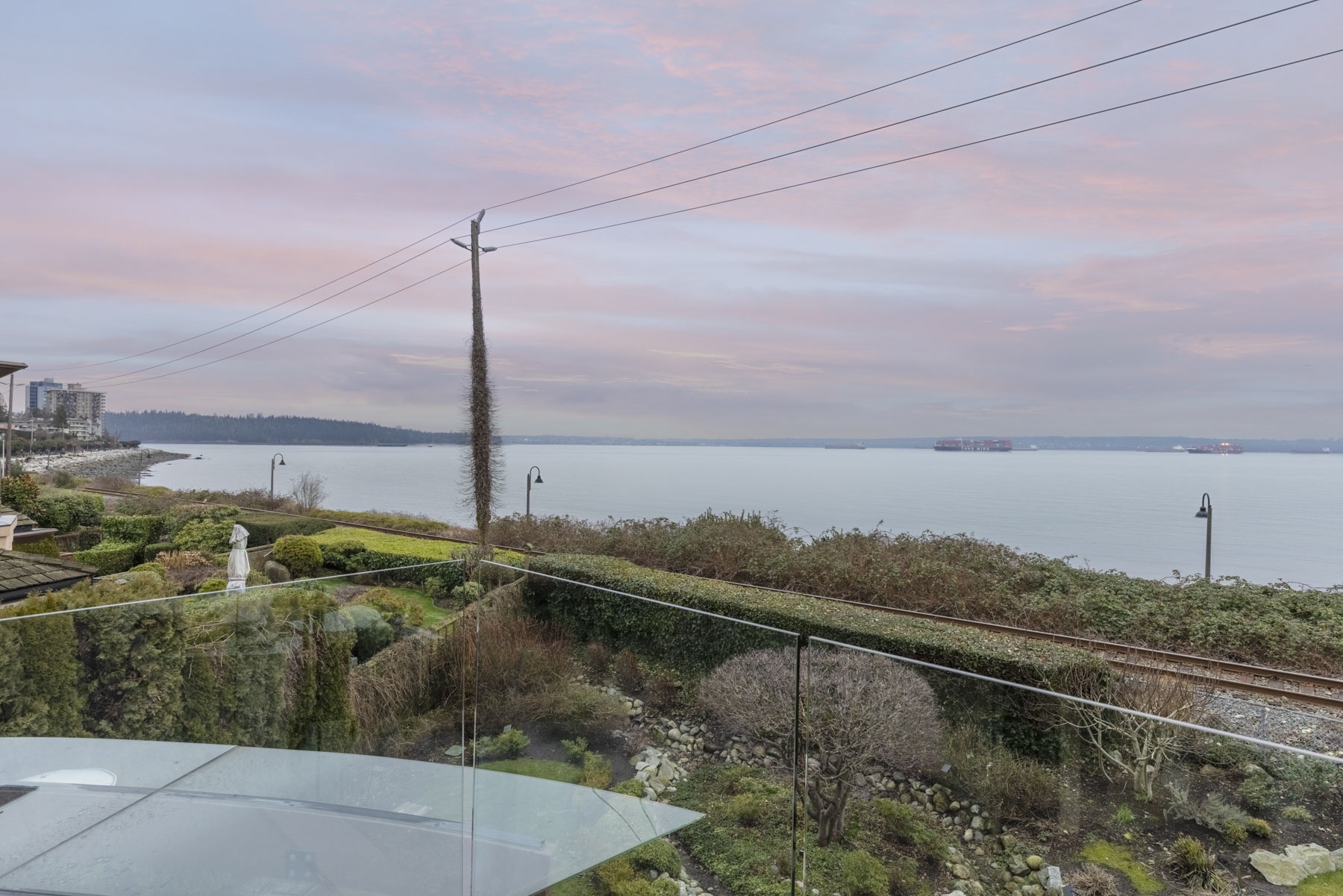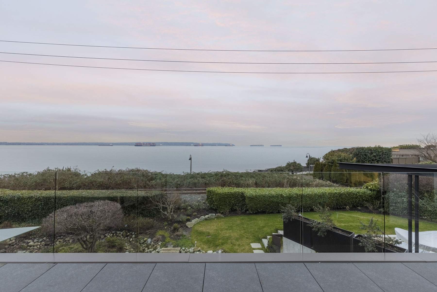 Remarkable waterfront residence featuring incomparable ocean views of the West Vancouver shoreline to Vancouver Island. Steps away from the seawall, this gorgeously landscaped custom, ultra-luxury modern dream home shows as new with a wonderful seaside position in the most desirable Dundarave neighbourhood. Floor to ceiling glass walls provide bright and open concept, entertainment size principal rooms, international kitchen with Miele appliances, adjoining eating area with direct views to the ocean. Main level enjoys unique finishes including gorgeous spiral staircase, marble flooring, custom doors, bocci lights, top tier Millson automation. Above, 2 large master bedrooms with walk through closets and laundry, built in office. Irreplaceable ocean front property on very prestigious street.