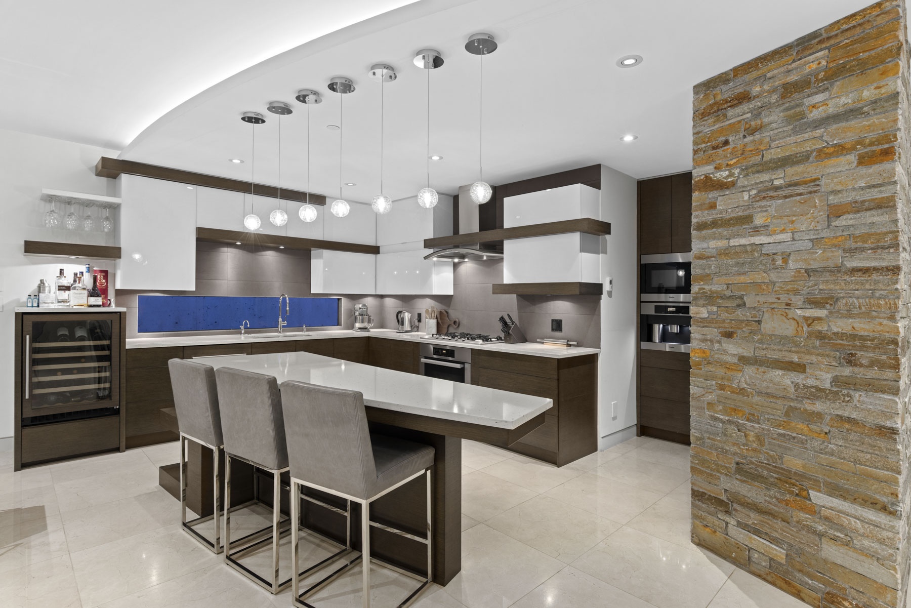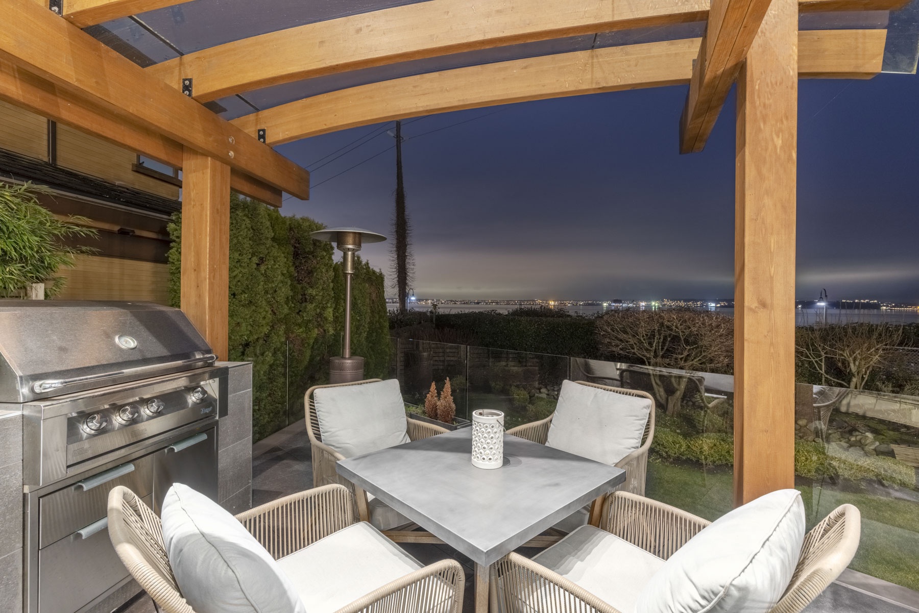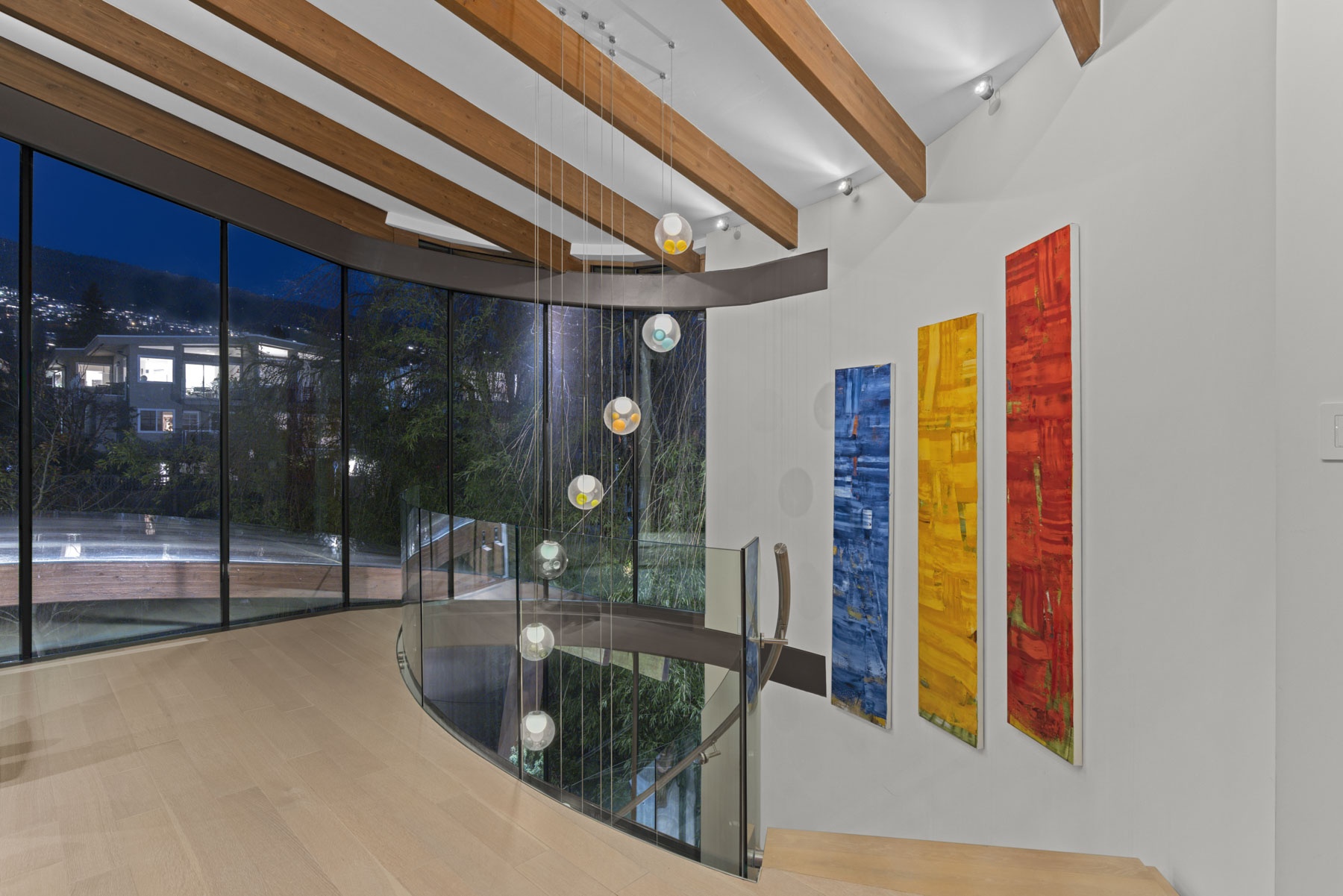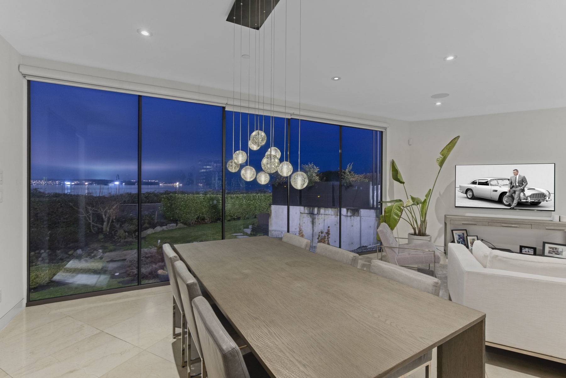 Remarkable waterfront residence featuring incomparable ocean views of the West Vancouver shoreline to Vancouver Island. Steps away from the seawall, this gorgeously landscaped custom, ultra-luxury modern dream home shows as new with a wonderful seaside position in the most desirable Dundarave neighbourhood. Floor to ceiling glass walls provide bright and open concept, entertainment size principal rooms, international kitchen with Miele appliances, adjoining eating area with direct views to the ocean. Main level enjoys unique finishes including gorgeous spiral staircase, marble flooring, custom doors, bocci lights, top tier Millson automation. Above, 2 large master bedrooms with walk through closets and laundry, built in office. Irreplaceable ocean front property on very prestigious street.
