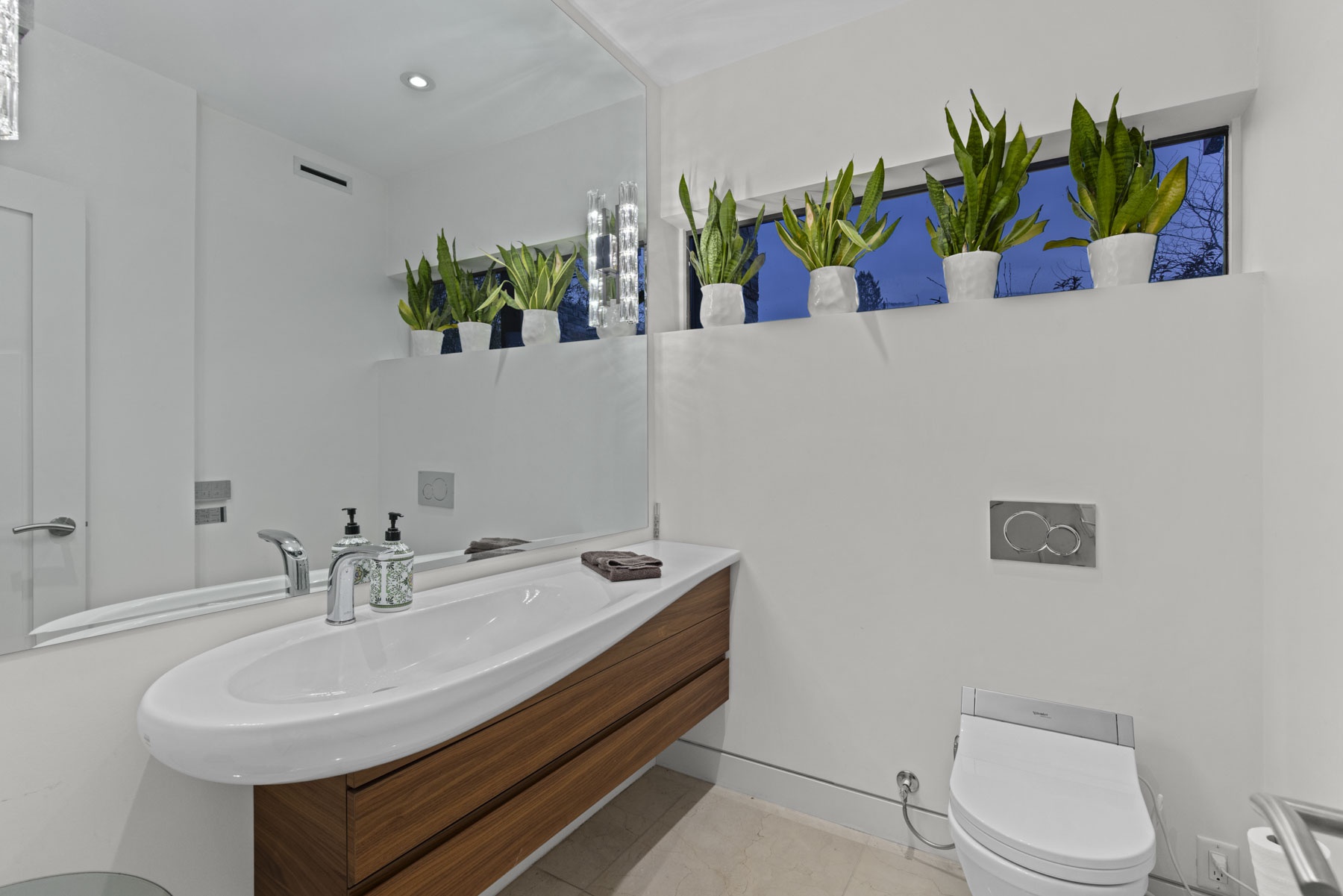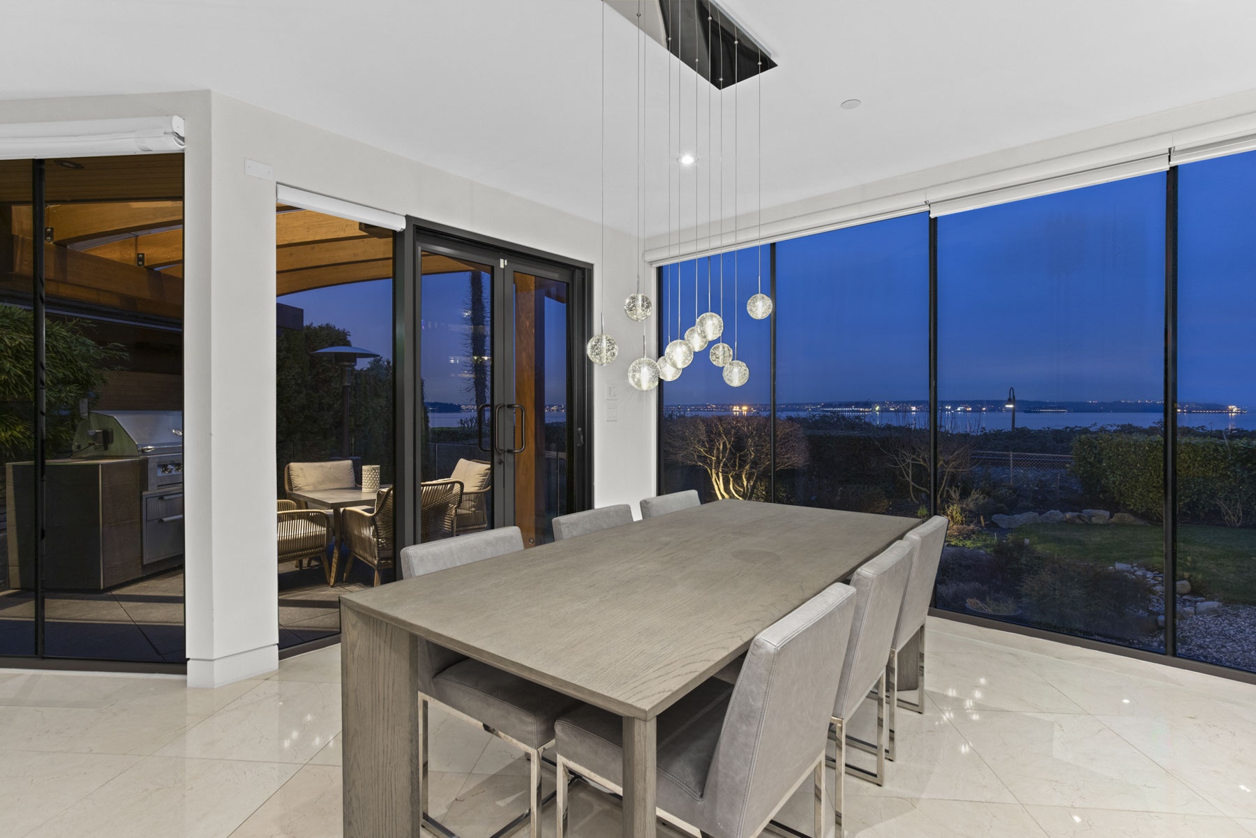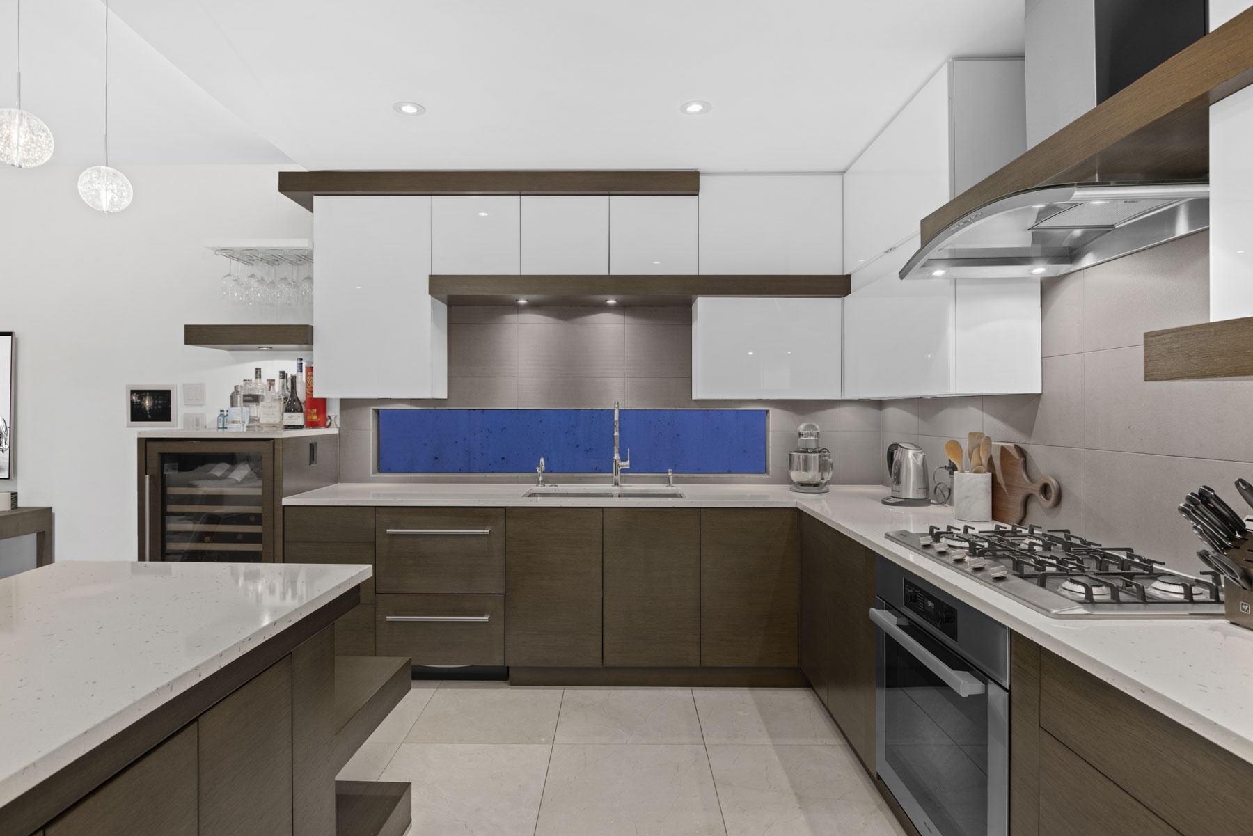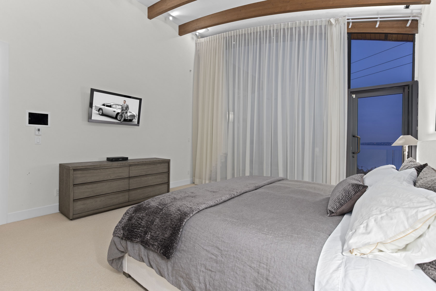 Remarkable waterfront residence featuring incomparable ocean views of the West Vancouver shoreline to Vancouver Island. Steps away from the seawall, this gorgeously landscaped custom, ultra-luxury modern dream home shows as new with a wonderful seaside position in the most desirable Dundarave neighbourhood. Floor to ceiling glass walls provide bright and open concept, entertainment size principal rooms, international kitchen with Miele appliances, adjoining eating area with direct views to the ocean. Main level enjoys unique finishes including gorgeous spiral staircase, marble flooring, custom doors, bocci lights, top tier Millson automation. Above, 2 large master bedrooms with walk through closets and laundry, built in office. Irreplaceable ocean front property on very prestigious street.