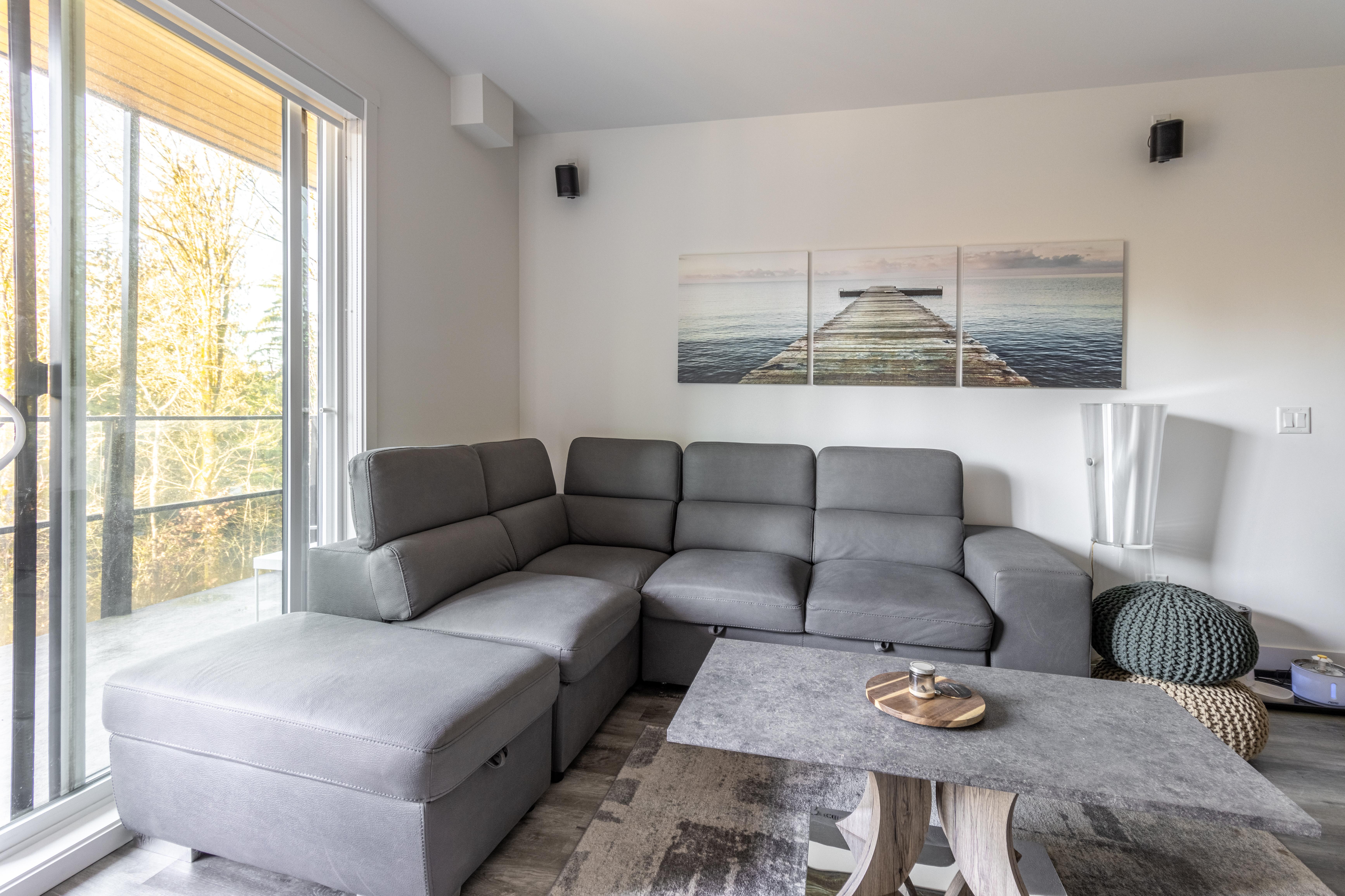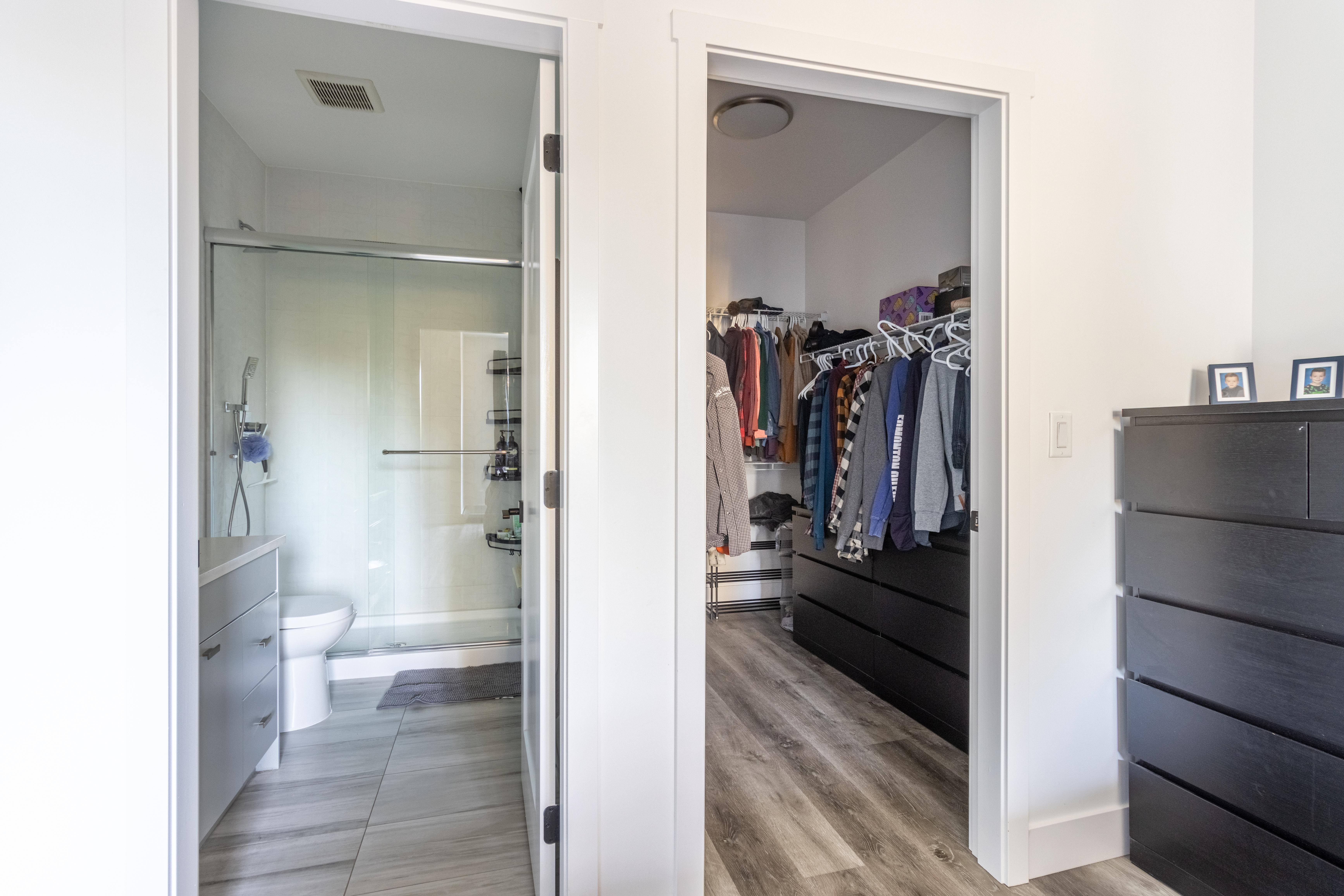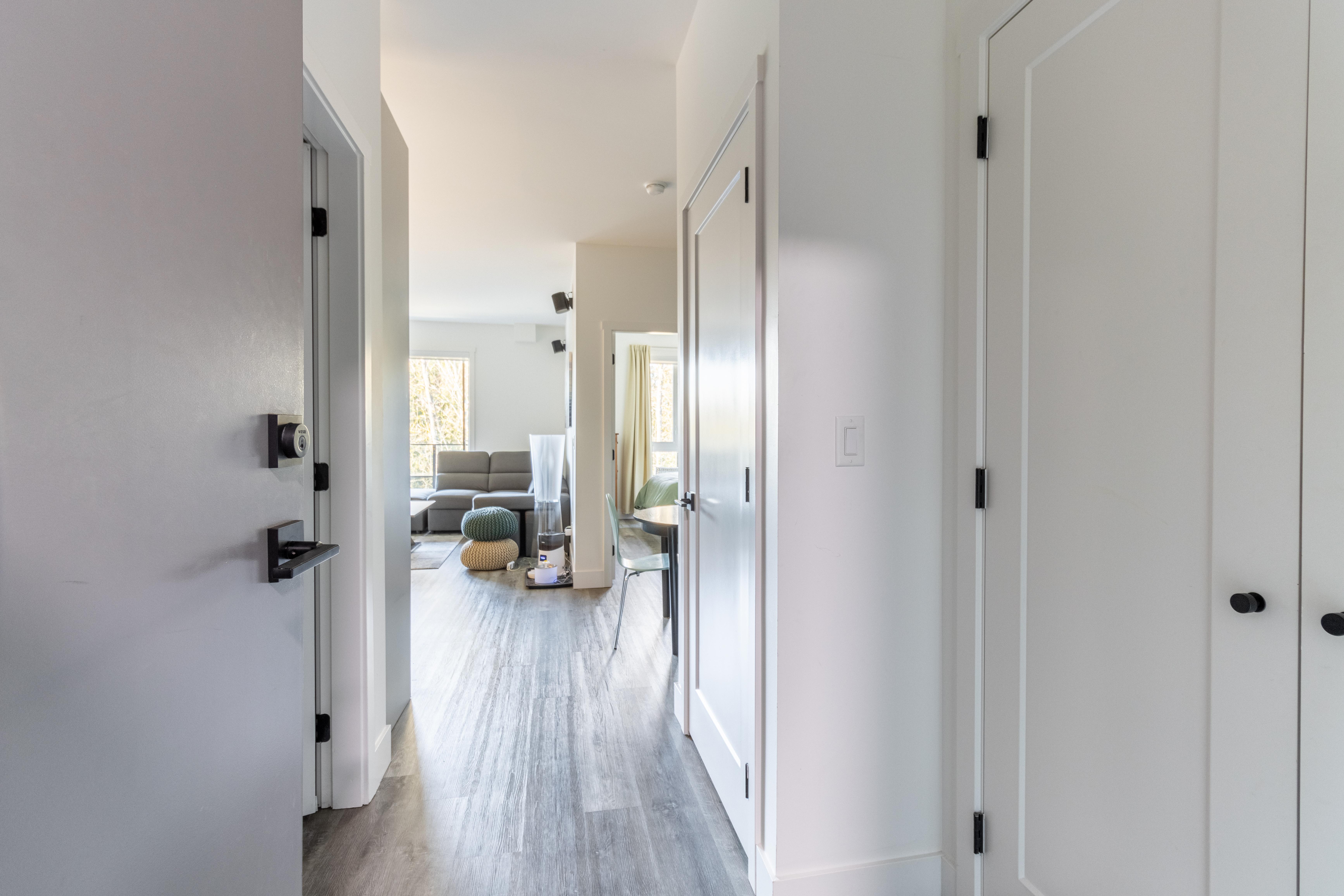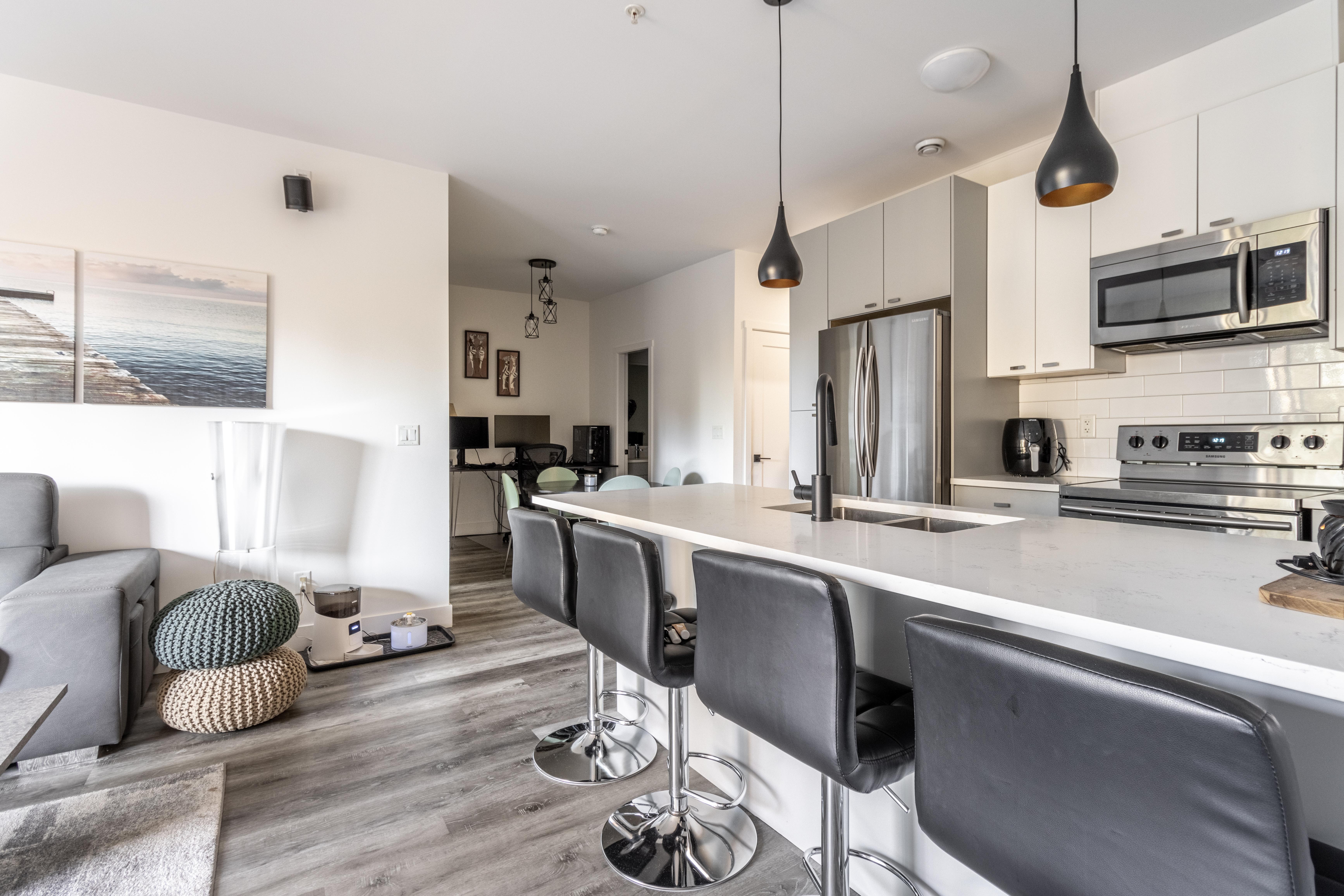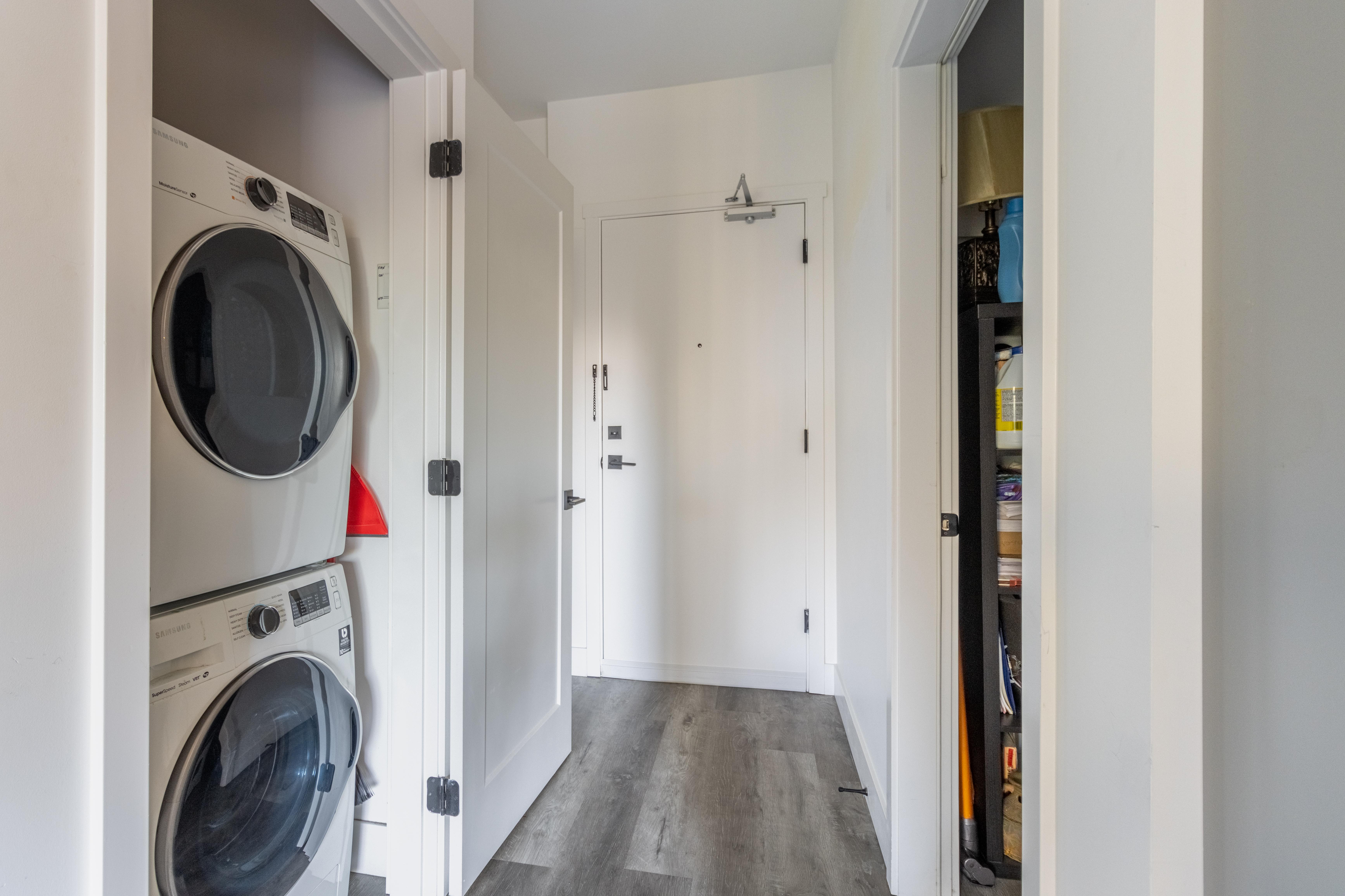 Penthouse living at it's finest! This spacious 1,039sqft 2 bedroom and den, 2 bathroom condo features 12ft vaulted ceilings, open concept living room, modern style kitchen with a breakfast bar, large master bedroom with a full sized walk-in closet and ensuite washroom, as well as a den that is perfect for your home office and a covered balcony to enjoy the outside rain or shine. The unit is equipped with air conditioning in every room to keep you cool on those hot summer days and heat pump will make sure you're nice and toasty on those cold winter days. Built in 2020, it still has the balance of the 5-10 building warranty to give you peace of mind. It is situated at the end of a quiet street surrounded by greenery, shops, cafes and restaurants close by. Come take a look and see what this amazing unit has to offer!