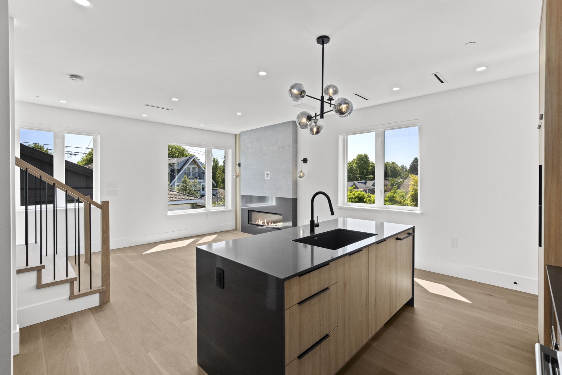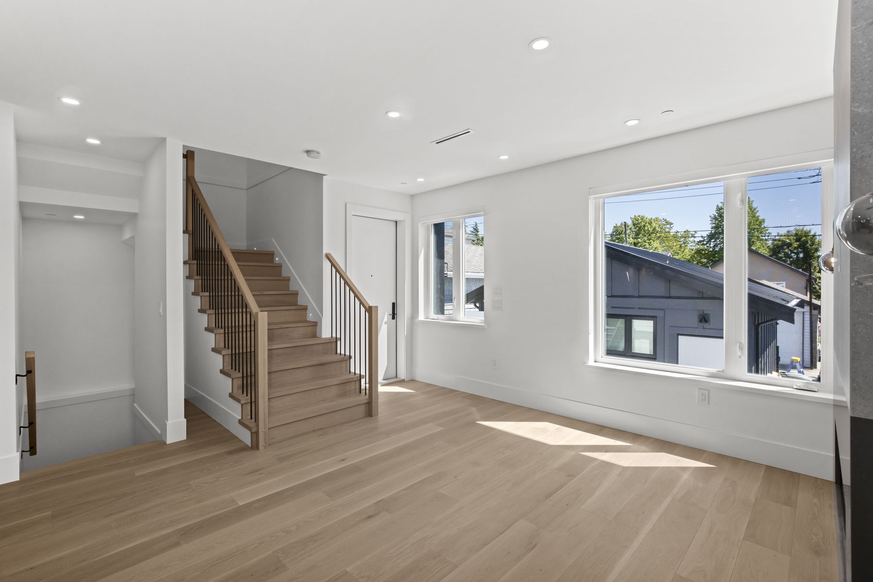 Step into this brand new and meticulously crafted 3 bedroom, 4 bathroom 1/2 duplex situated steps away from the vibrant community of Commercial Drive! Enjoy 3 levels of living; main level features a living/dining area with a beautiful electric fireplace, 3pc bathroom, and kitchen complete with stainless steel appliances and integrated refrigerator. Upper level encompasses 3 bedrooms and 2 bathrooms including the primary bedroom suite complete with an ensuite and walk-in closet. Lower level consists of a lock off suite with its own kitchen and full bathroom. Located just steps away from amazing shopping, dining and recreational experiences of Commercial Drive and a short drive to Downtown Vancouver and surrounding areas.