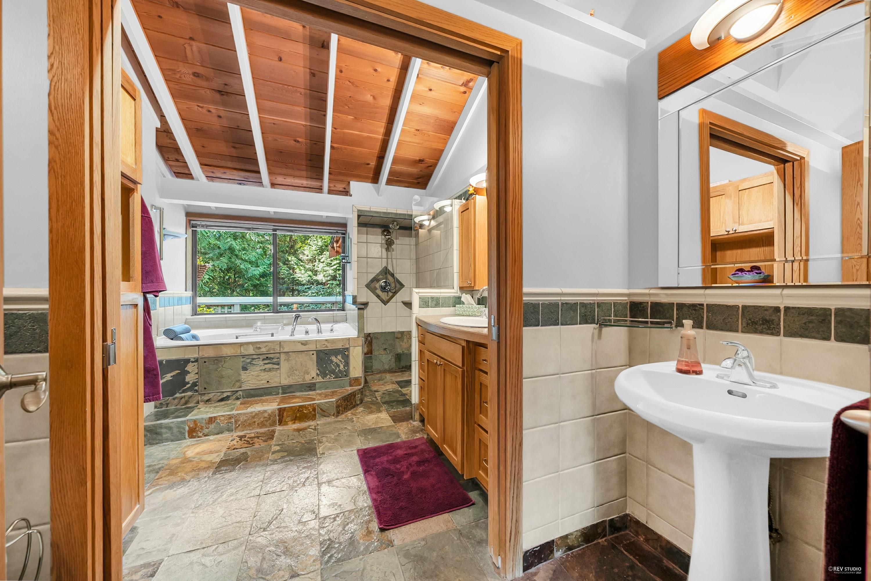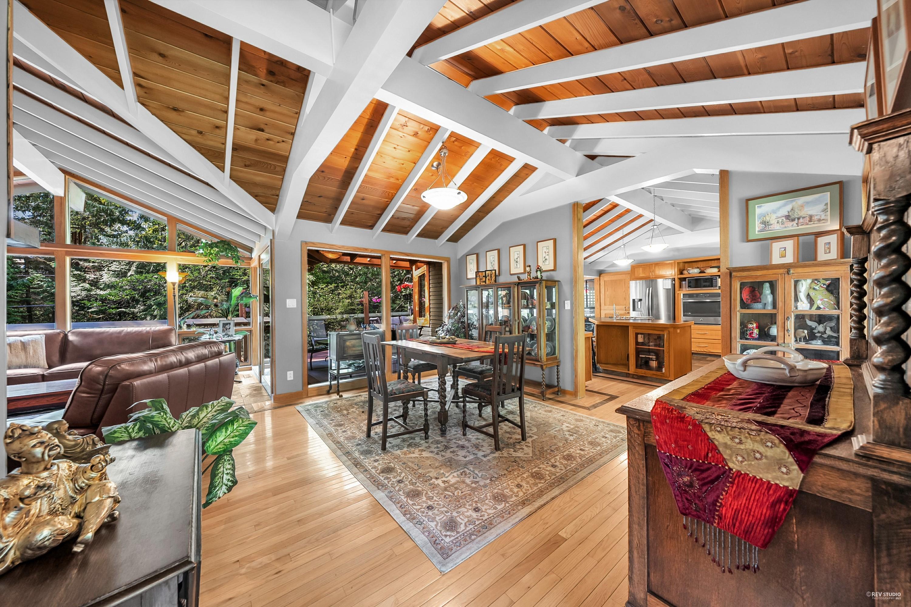 Discover a truly enchanting property, this home provides a private haven of natural beauty and timeless tranquility. Vaulted ceilings and expansive windows fill the space with natural light, creating a warm and inviting atmosphere. This property boasts an expansive patio area that seamlessly blends with the forest scenery, offering a perfect retreat for outdoor living and relaxation. Whether you’re entertaining or unwinding, this home offers a rare blend of charm, peacefulness, and serenity. Located at the end of a cul-de-sac, enjoy a quiet environment surrounding your home. Just a 10-minute walk to Sandy Cove Beach and McKechnie Park. Don’t miss the opportunity to own in this highly desired neighbourhood.