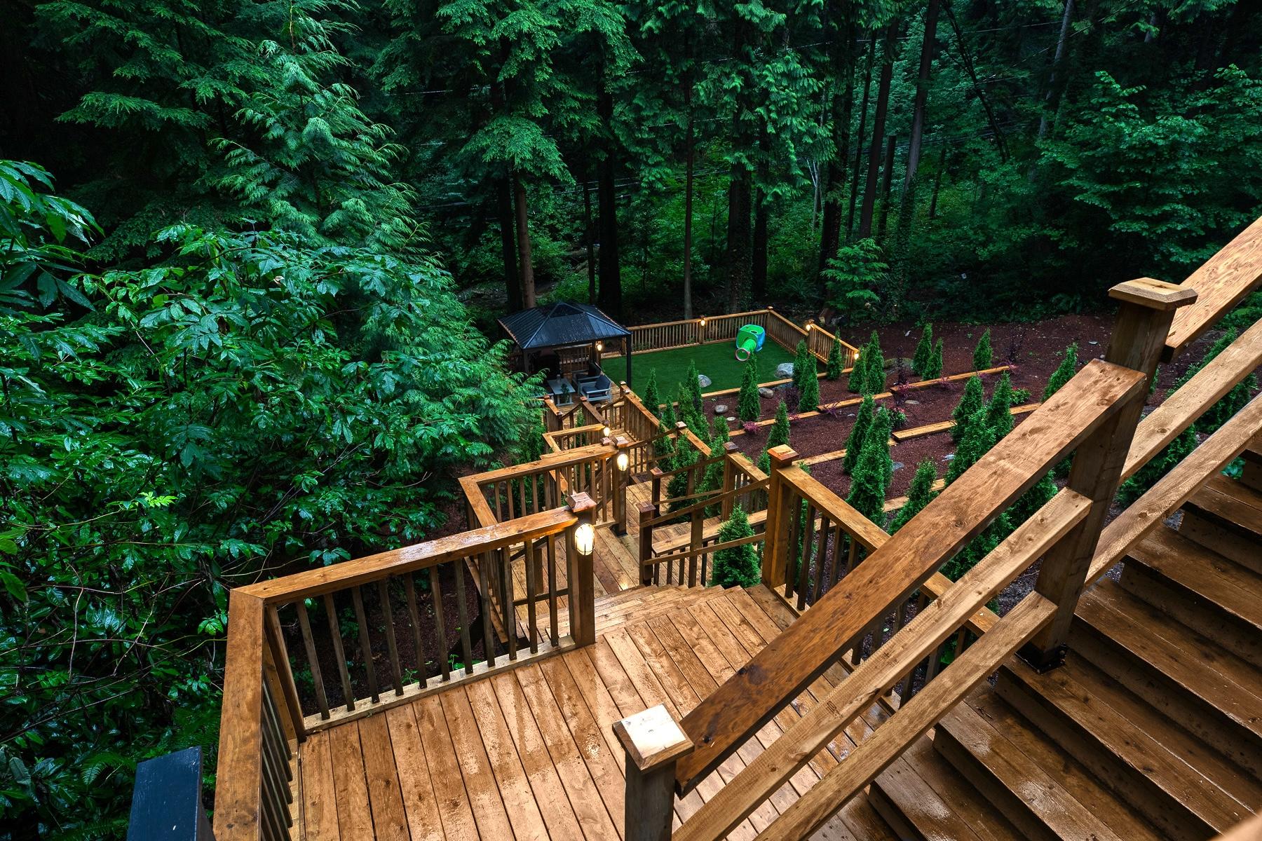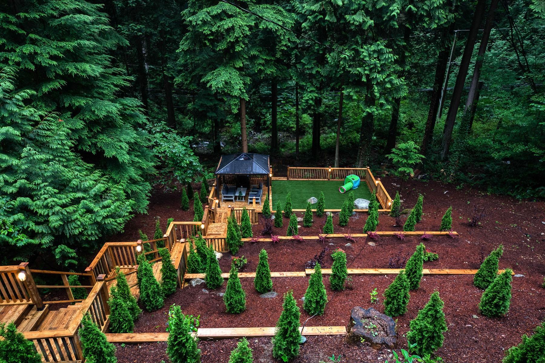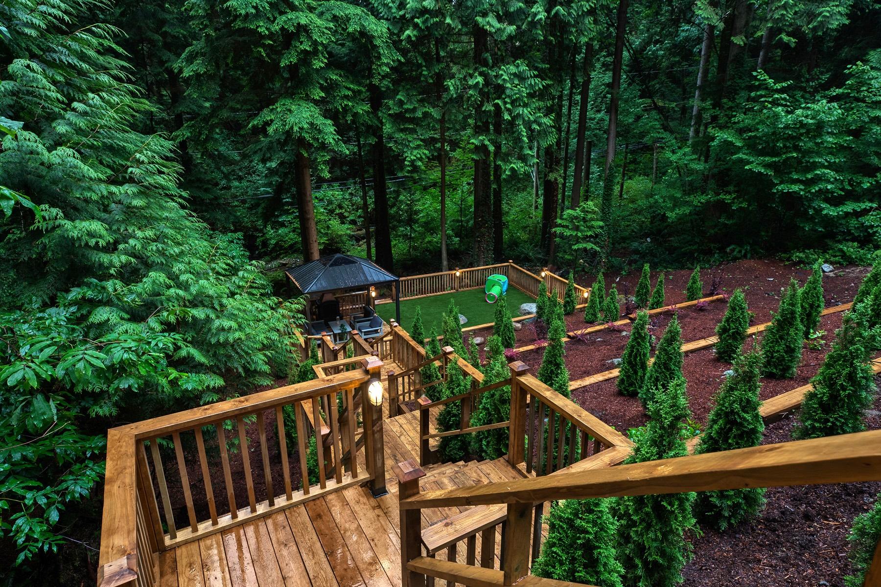 This beautifully renovated 5 bedroom, 4 bathroom home in the prestigious British Properties showcases picturesque windows framing garden, forest and mountain views. The main floor features a stunning vaulted post and beam living room with a grand wood-burning fireplace, an elegant dining room, gourmet kitchen, bar and a warm, inviting family room—all flowing onto a large deck ideal for indoor/outdoor living. Also on this level are 3 bedrooms and 2 stylish designer bathrooms. The lower floor offers a spacious rec/media room, office or guest bedroom, full bath as well as a 2 bedroom suite with separate entrance and patio. Tiered gardens, custom stairs and a tranquil gazebo complete this serene setting.