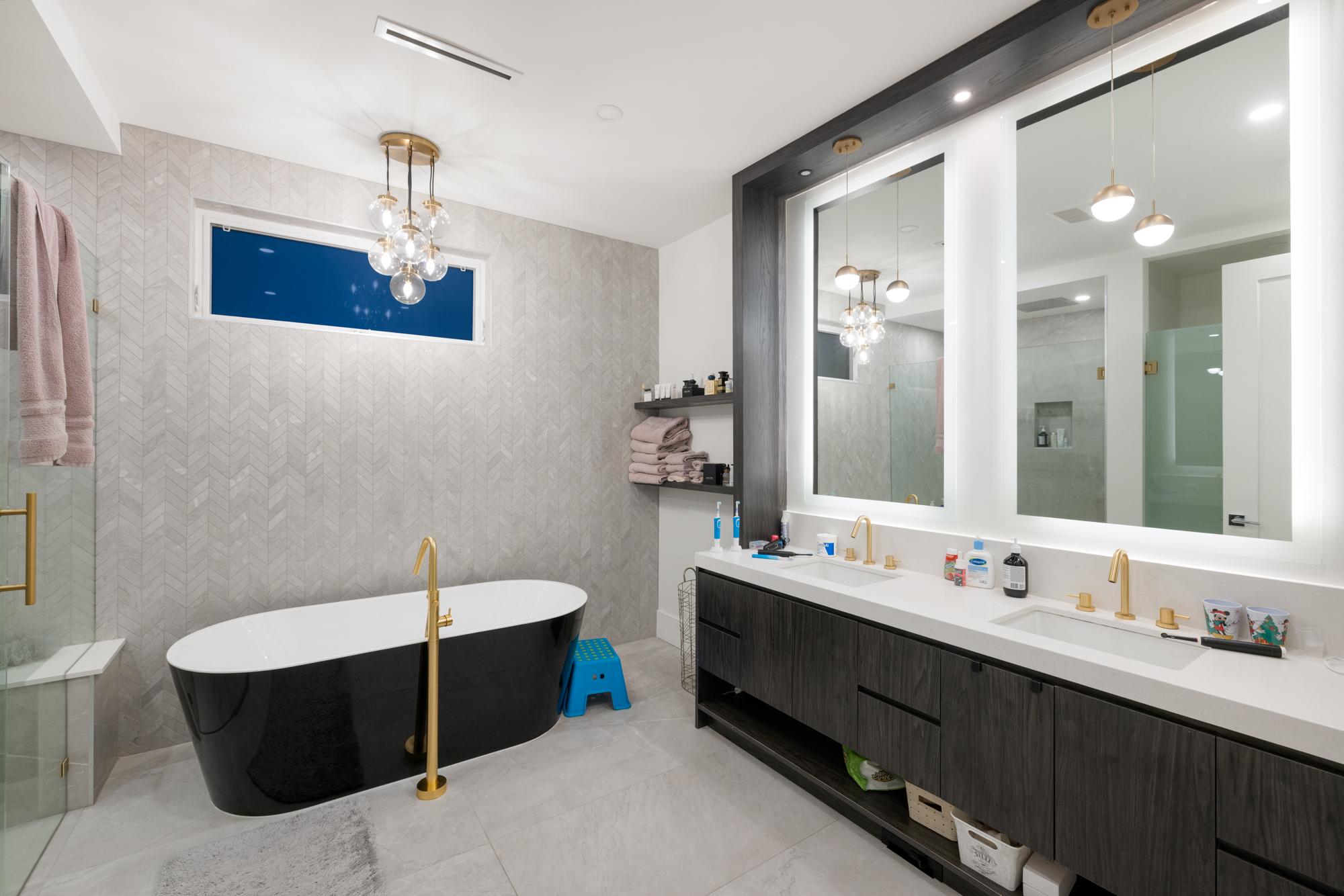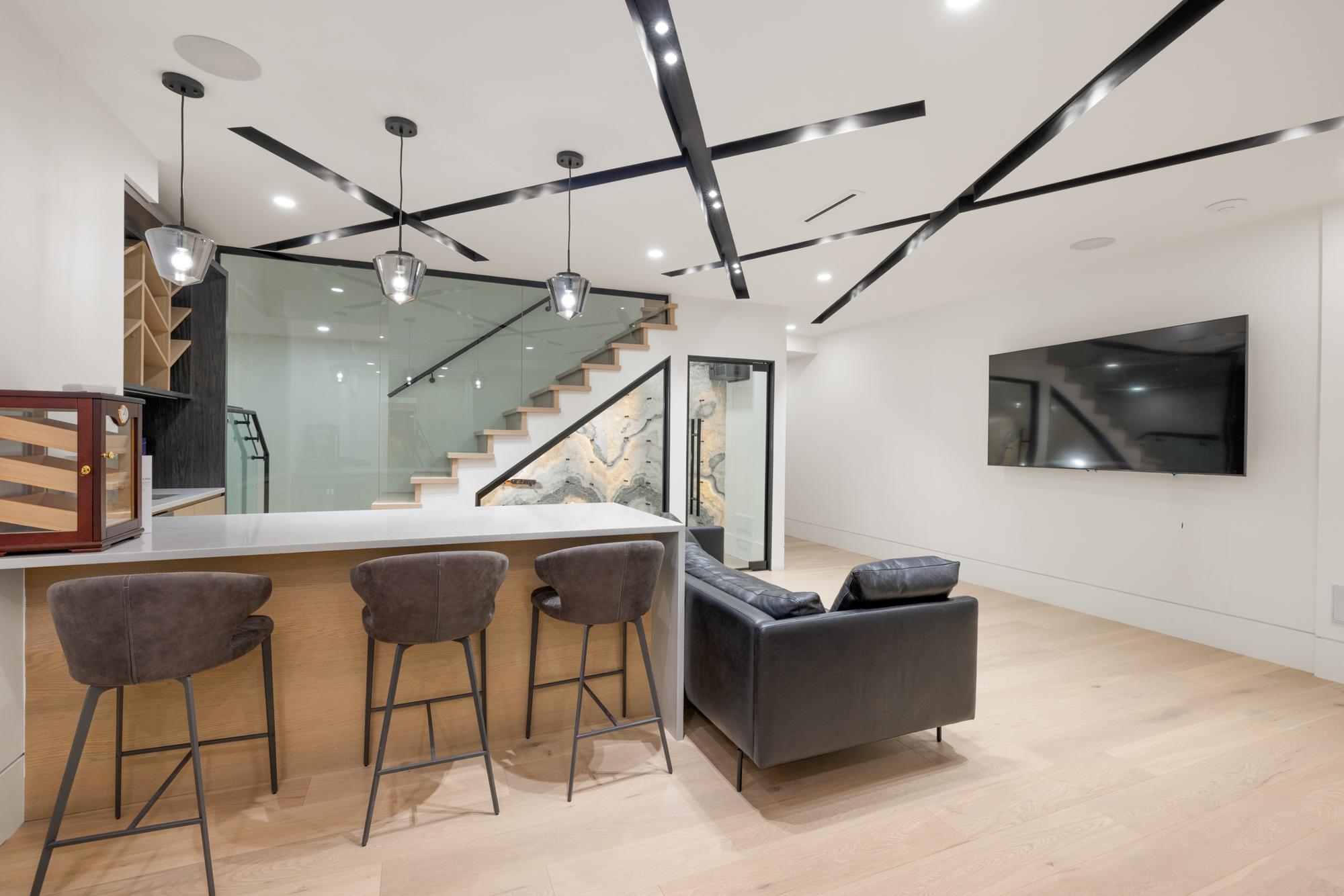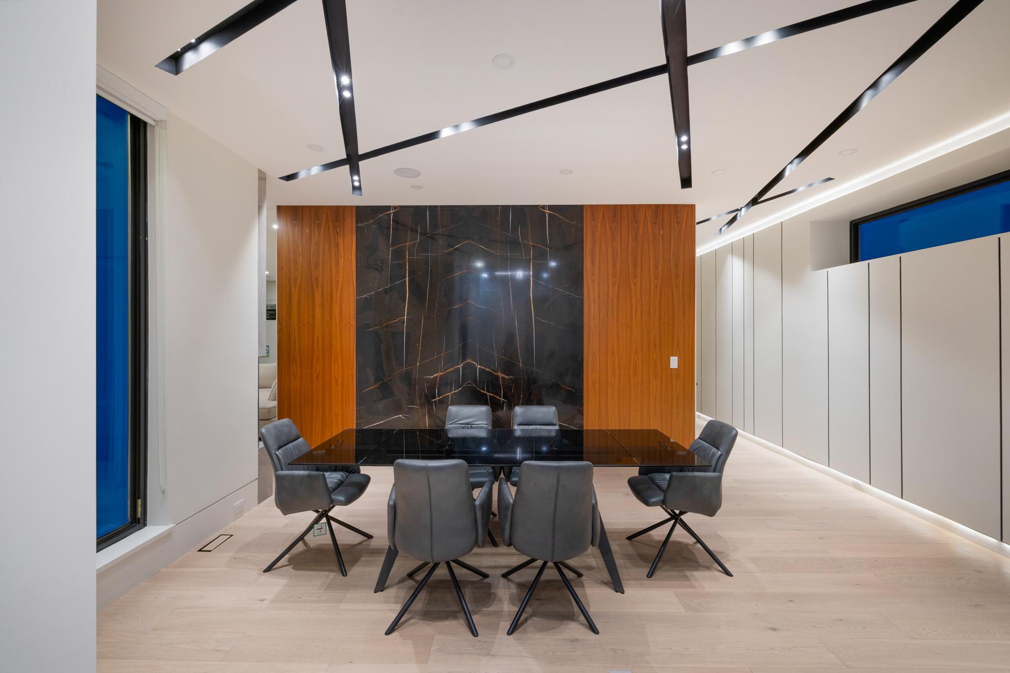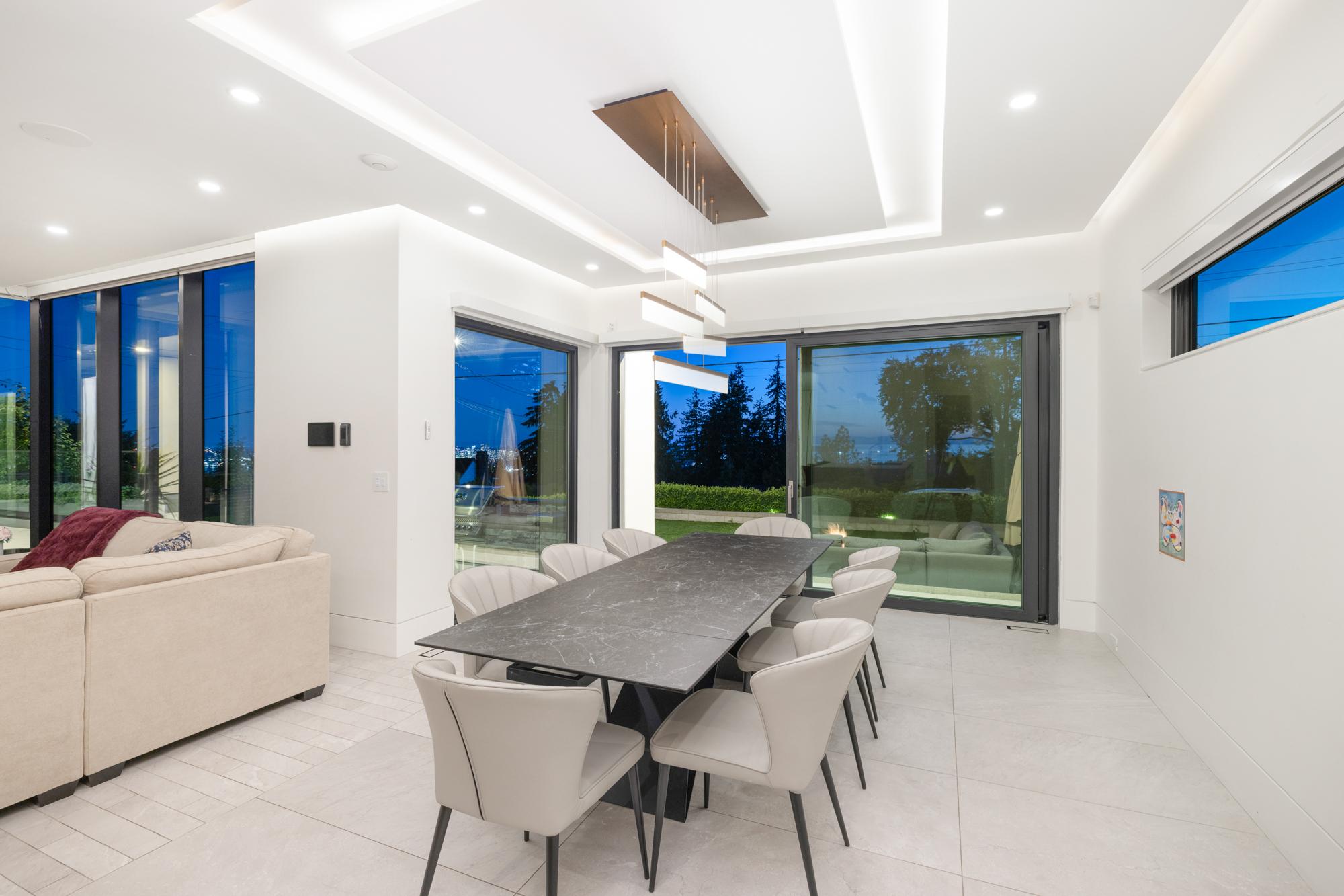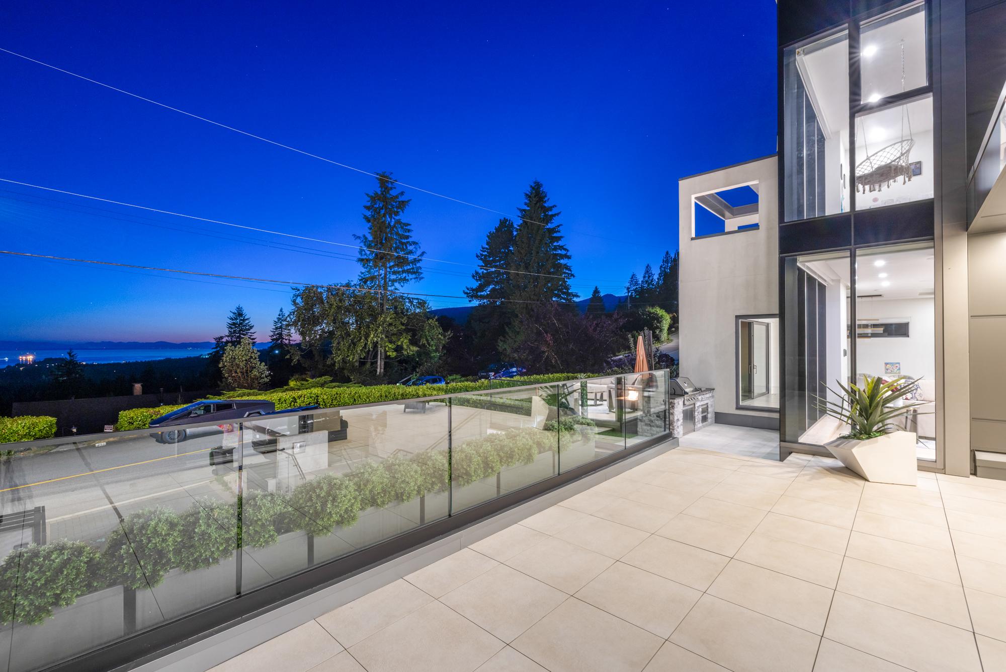 Stunning 6,774 sq.ft. custom home with spectacular ocean and Downtown Vancouver views. This 3 level residence features 7 bedrooms, 8 bathrooms, and exceptional finishes throughout. Grand foyer, spacious living/dining and a gourmet kitchen with premium appliances. Luxurious primary suite with spa-like ensuite and private balcony. Includes a media room, sauna, wine cellar, nanny suite, and a 2-bedroom legal suite. Beautifully landscaped backyard and 2-car garage. Bonus! Includes a detached office space making work from home a breeze. Located in a quiet neighbourhood within Braemar Elementary and Carson Graham Secondary catchments. A rare opportunity in North Vancouver.