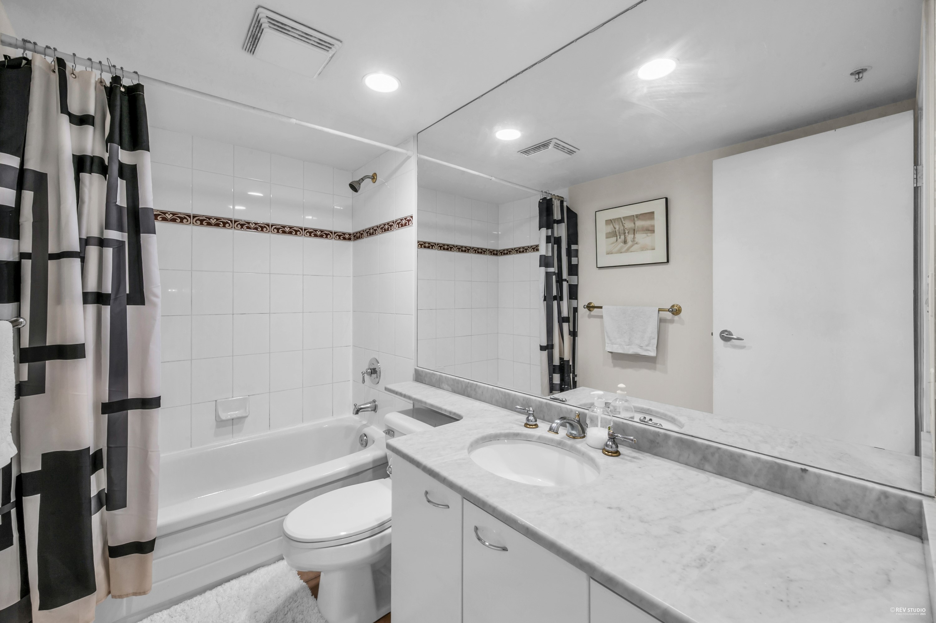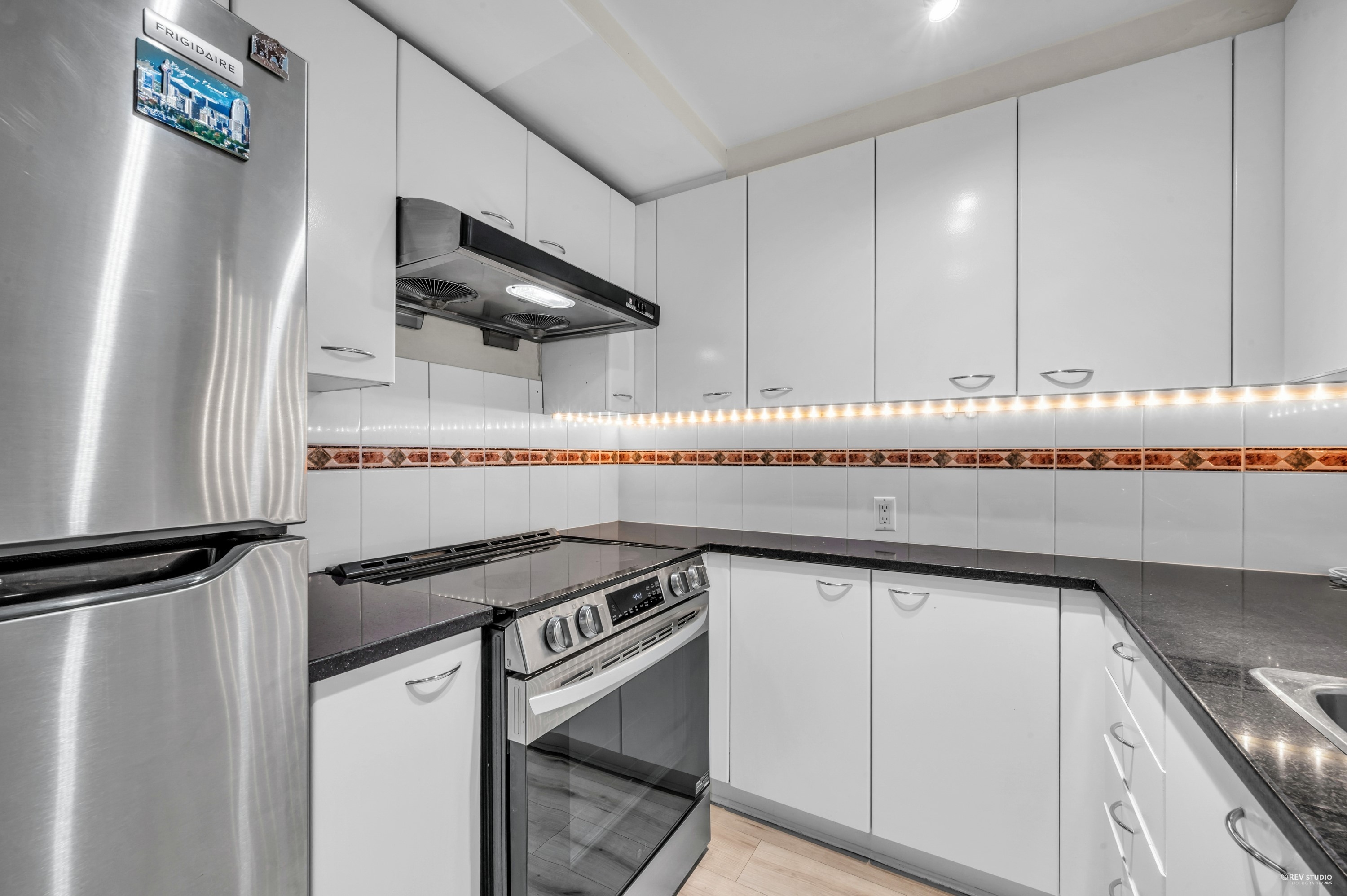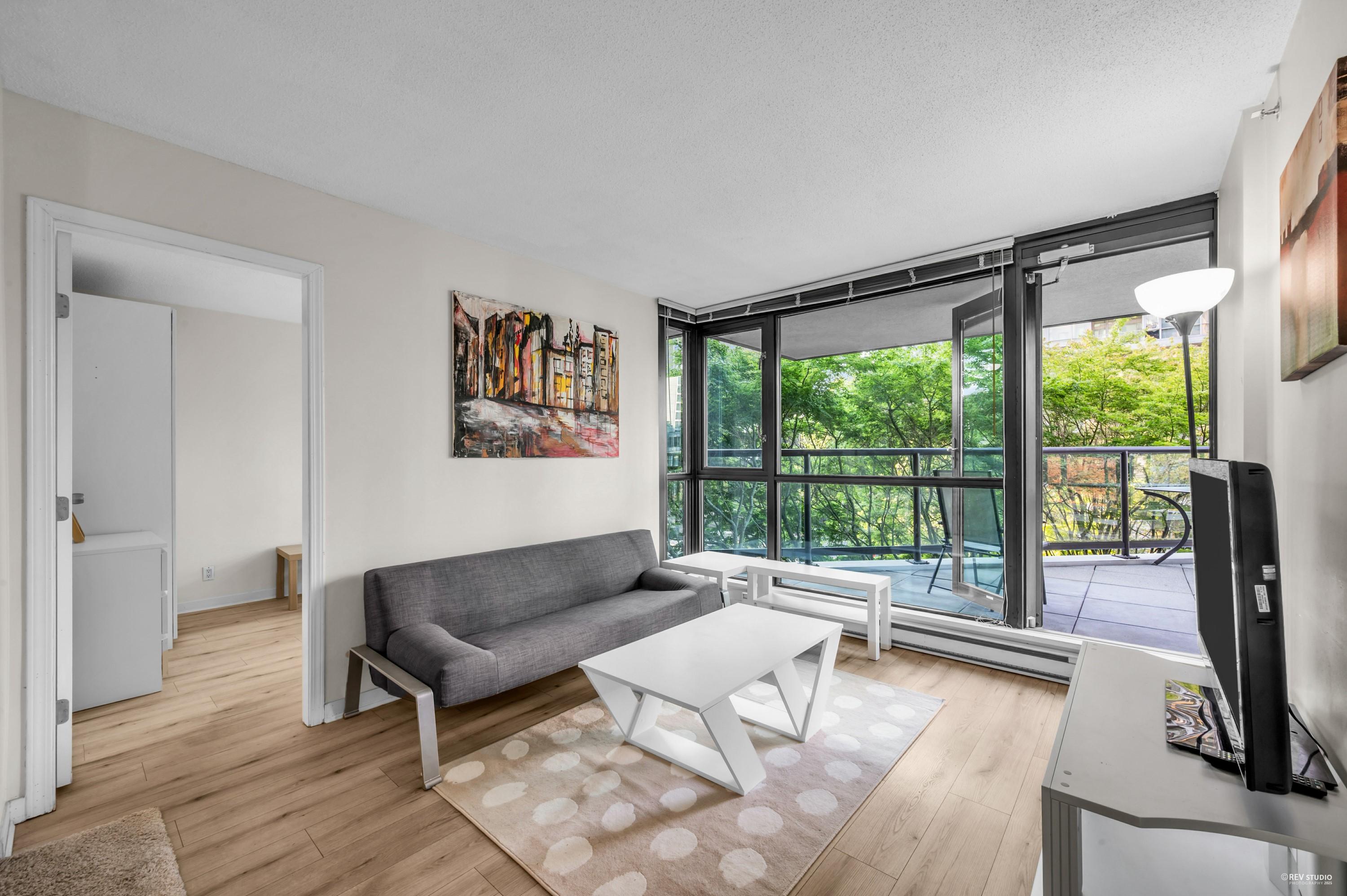 This bright 2 bedroom and den, 1 bathroom residence at The Lion on Alberni Street offers a smart layout with bedrooms on opposite sides for added privacy. The home features an updated kitchen with newer appliances, laminate flooring throughout and in-suite laundry. Enjoy outdoor living on a generous sized balcony overlooking the quiet courtyard. Includes 1 parking and 1 storage locker. Residents have access to fantastic amenities including a fitness centre, sauna, guest suites, media and meeting rooms, plus 24-hour concierge. All just steps from Robson shopping, dining, cafés, the seawall, and Stanley Park. Urban convenience at its finest!
