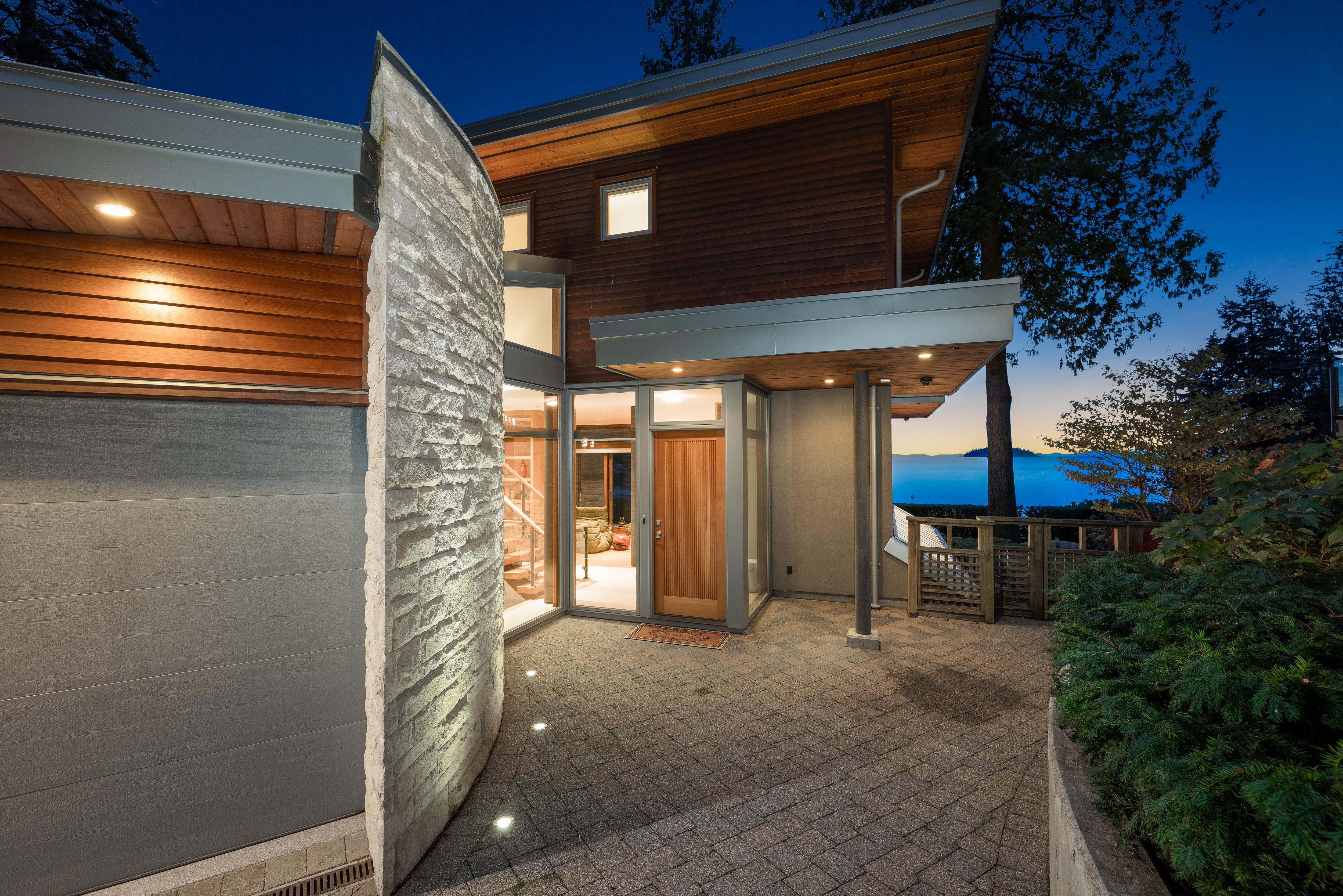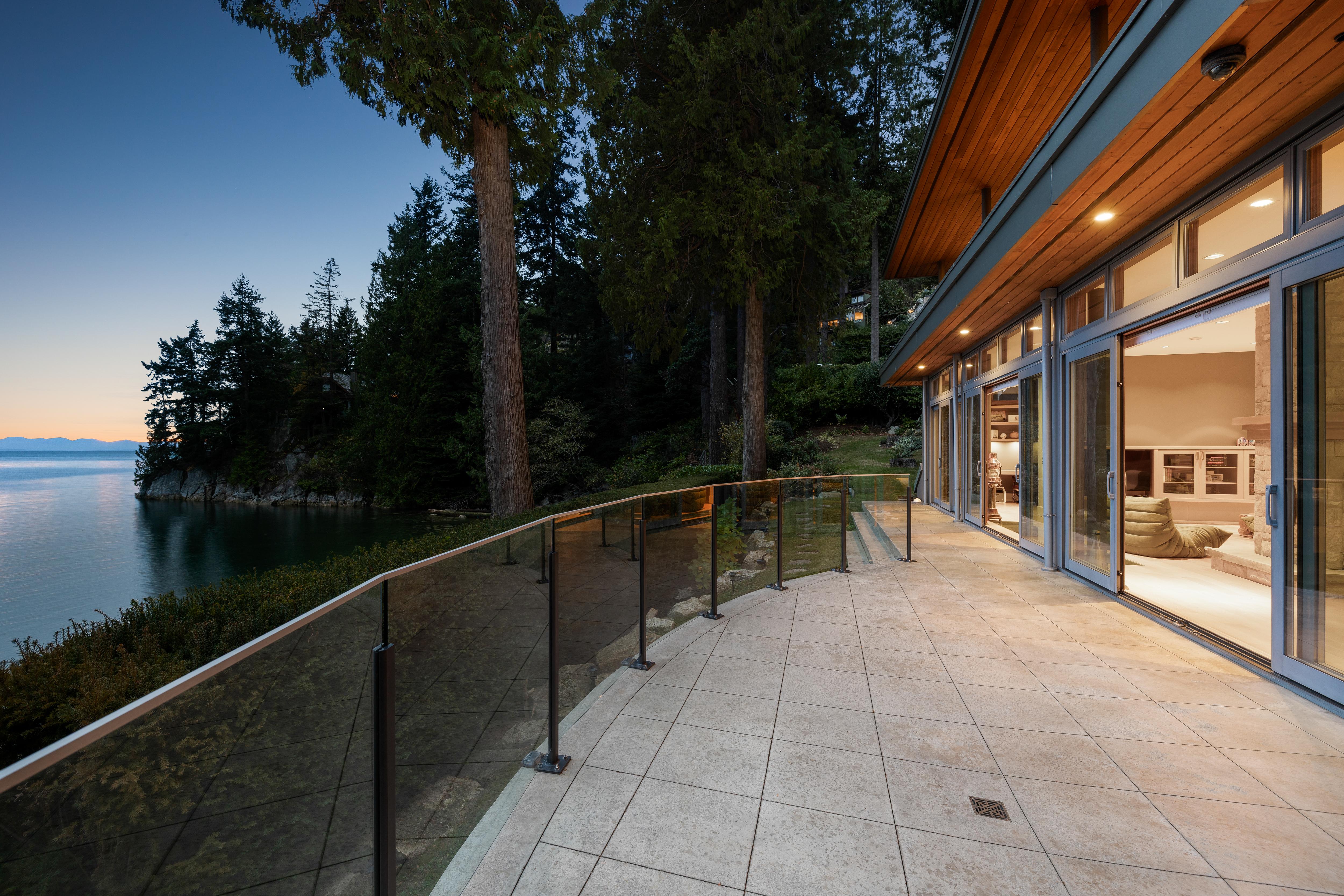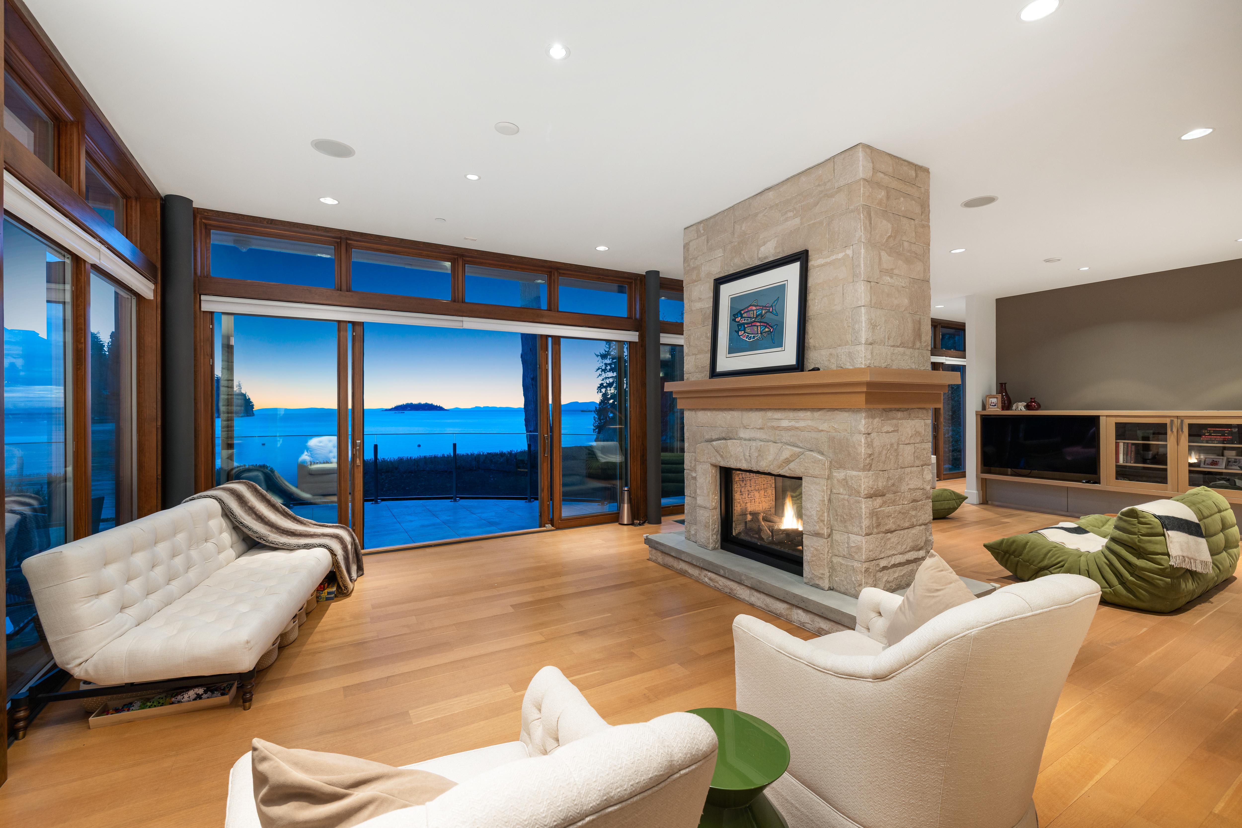 Designed by award-winning architect Frits De Vries, this world class waterfront residence offers breathtaking ocean views and unparalleled West Coast lifestyle in an exclusive gated community! Step inside to a bright, open living space that flows seamlessly to a sun-drenched terrace with direct beach access. Upstairs, every bed boasts unobstructed ocean views creating unmatched tranquility, plus spectacular primary with a cozy fireplace, spa-like ensuite and private terrace. A signature limestone feature wall descends to a recreation level opening to a private courtyard patio. Enjoy automated lights and blinds system, in-floor heating and access to the complex's pool/hot tub. Nestled onto Batchelor Bay, this home is a sanctuary for those who cherish exceptional architecture and waterfront living.