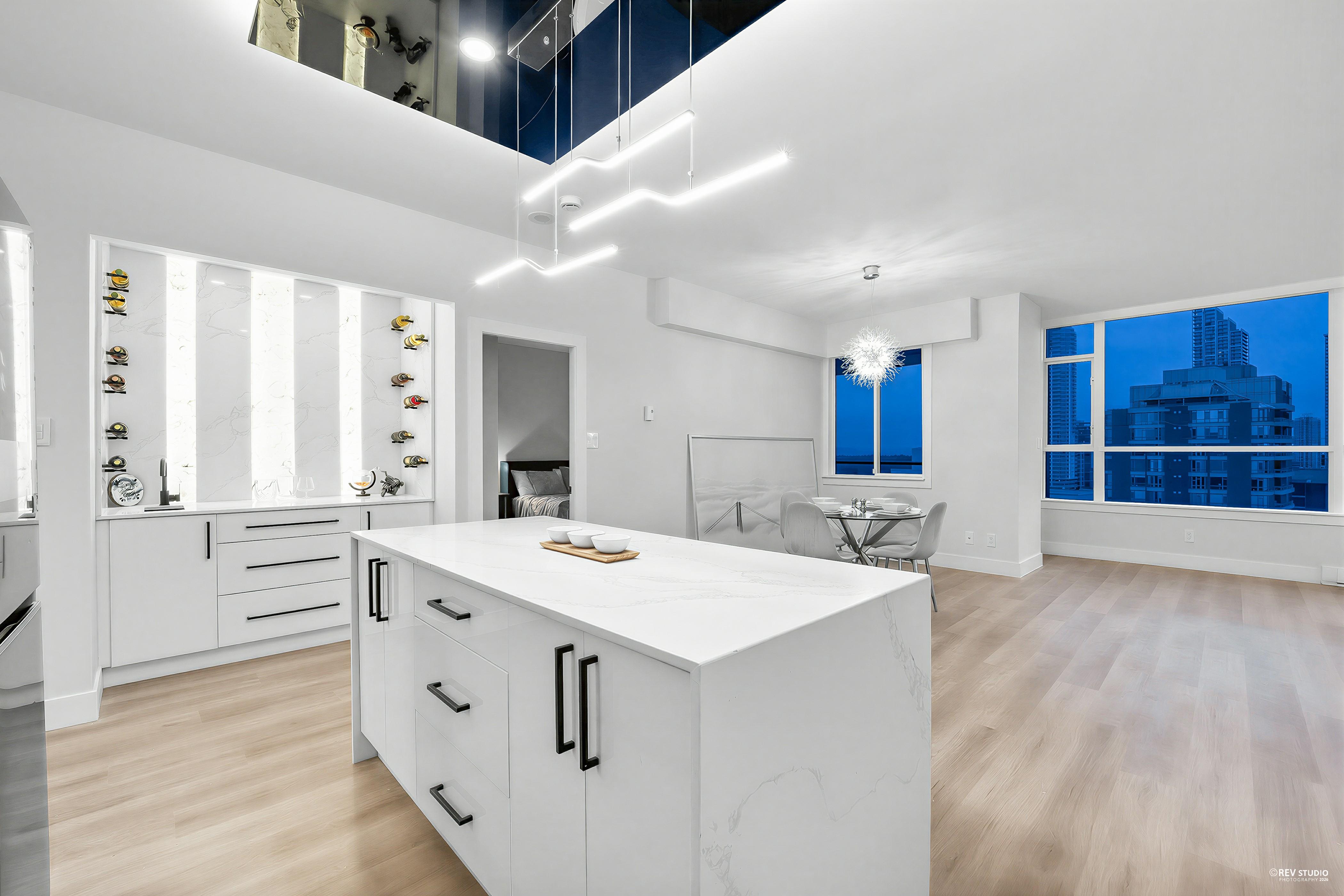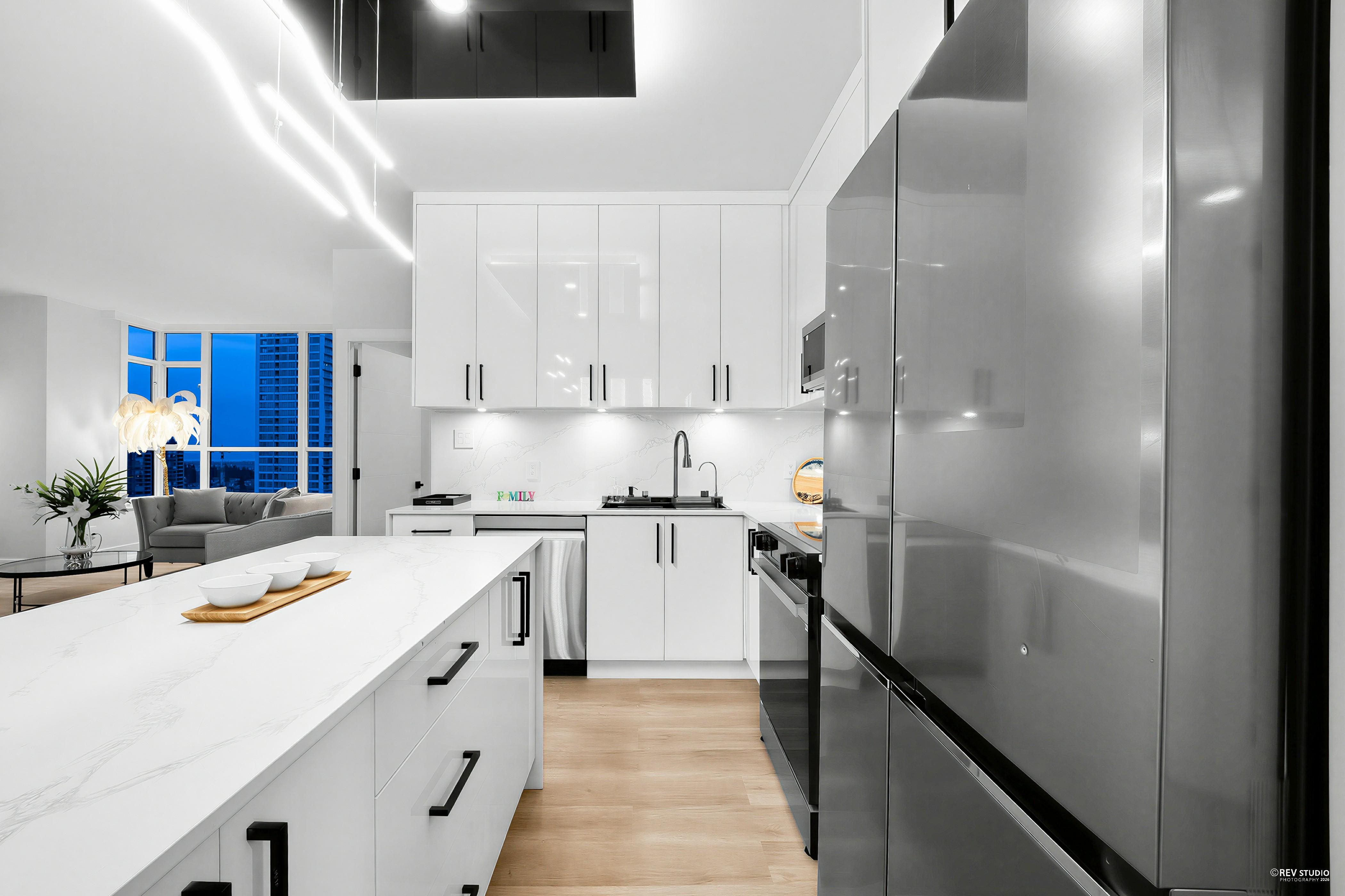 Welcome to The Metropolitan in Metrotown, one of Burnaby’s most well-cared-for and professionally managed buildings. This fully renovated 2 bedroom, 2 bathroom corner unit offers 1,208sqft of bright, open living space with 9’ ceilings and sweeping city views. Over $150K has been invested in high-end renovations, thoughtfully designed and finished to exceptional standards. Enjoy resort-style amenities including a fitness centre, recreation room, indoor pool, hot tub, and sauna. Major building upgrades include roof (2023), new elevators (2022), and full repiping (2012). Ideally located just outside the busiest part of Metrotown, steps to Patterson SkyTrain, Metrotown, Central Park, schools, shops, and dining.