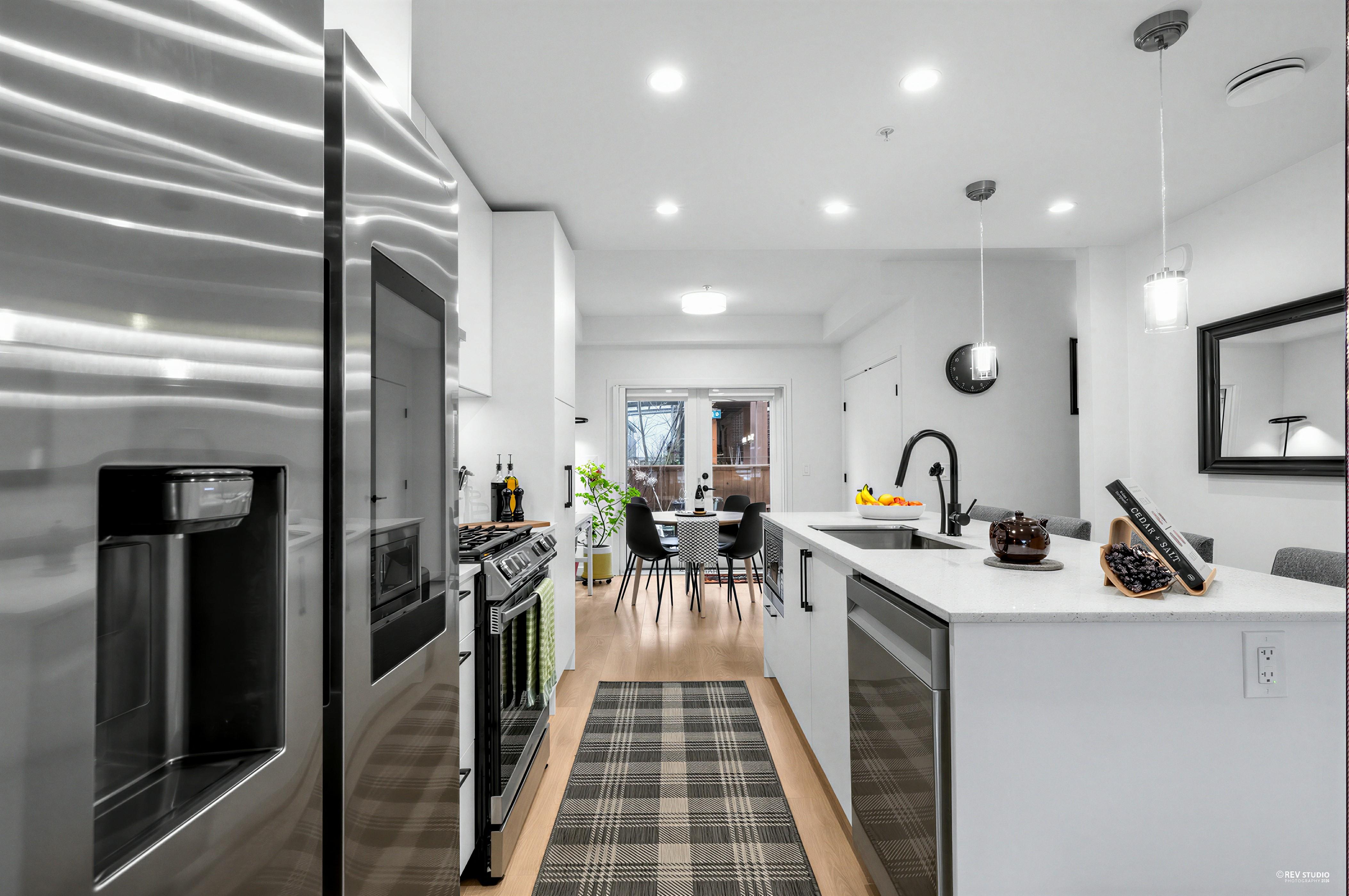 Welcome to The Trails, a refined 3 Bedroom + Den townhouse featuring a rare floor plan that sold out quickly during presales. Built in 2024 with no GST applicable, this home showcases elevated design, generous proportions, and seamless indoor-outdoor living. Two expansive patios provide exceptional space for entertaining and private retreat. Set in one of Moodyville’s most desirable pockets of North Vancouver, this residence offers a perfect balance of tranquility and urban convenience, steps from trails, shops, dining, and transit. A truly limited offering in a highly coveted community.