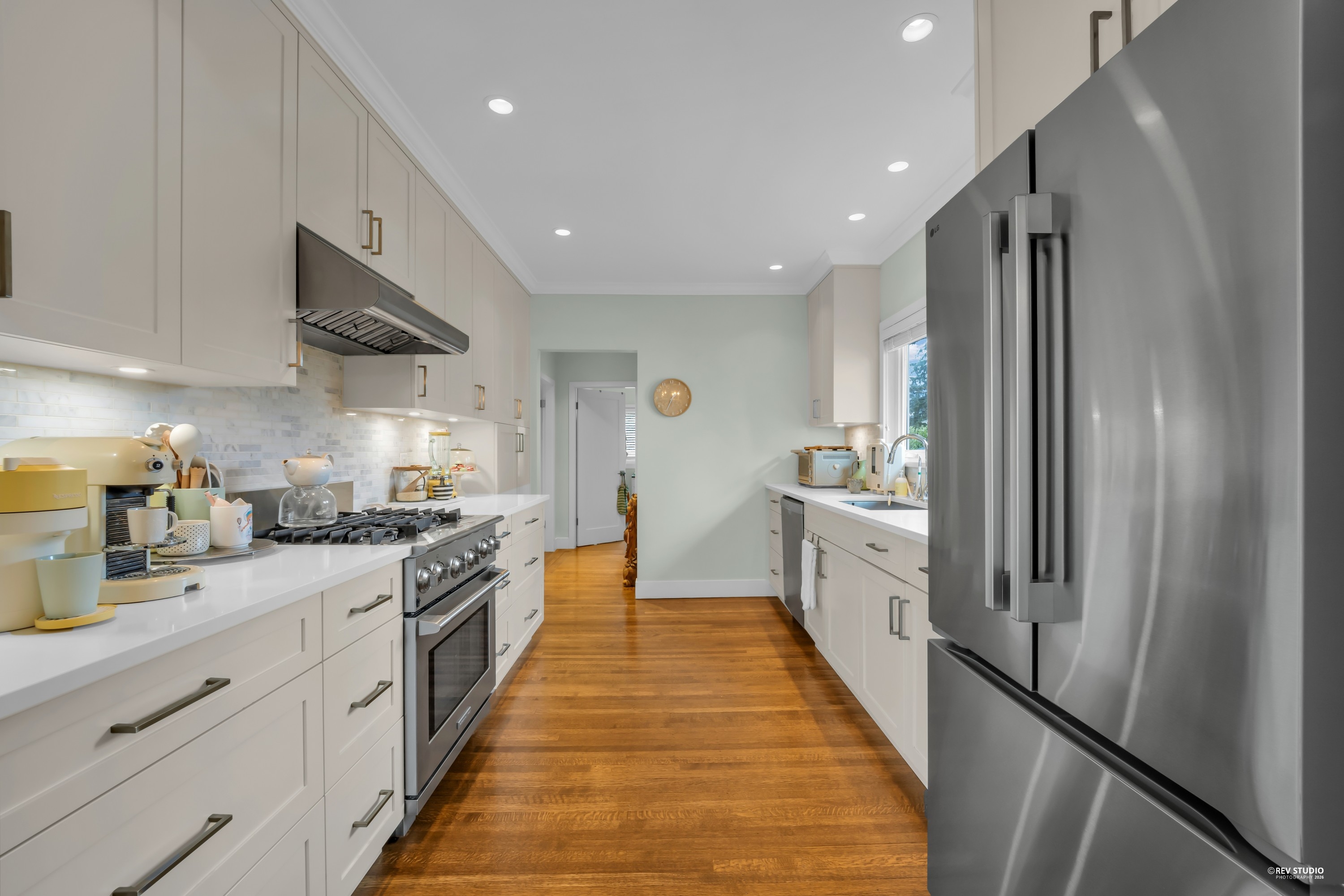 Tucked away on a quiet, sun-filled corner lot on Braeside Street, this family home offers exceptional privacy with sweeping mountain and southwest sunset views, plus potential for meaningful water views from a future second level. The home spans 1,977sqft over two levels and features a bright, open layout ideal for everyday living and entertaining. Highlights include a generous living area with a classic fireplace, an elegant dining space with large picture windows and sliding doors, and a custom kitchen with premium appliances. There are three well-sized bedrooms, including a primary suite with peaceful garden and sunset views, along with hardwood floors, all new windows, a large recreation room, and a covered veranda overlooking private, child-friendly gardens. Minutes to Park Royal, Ambleside Park, Ridgeview School, and downtown Vancouver. A great opportunity to enjoy or hold for future potential.