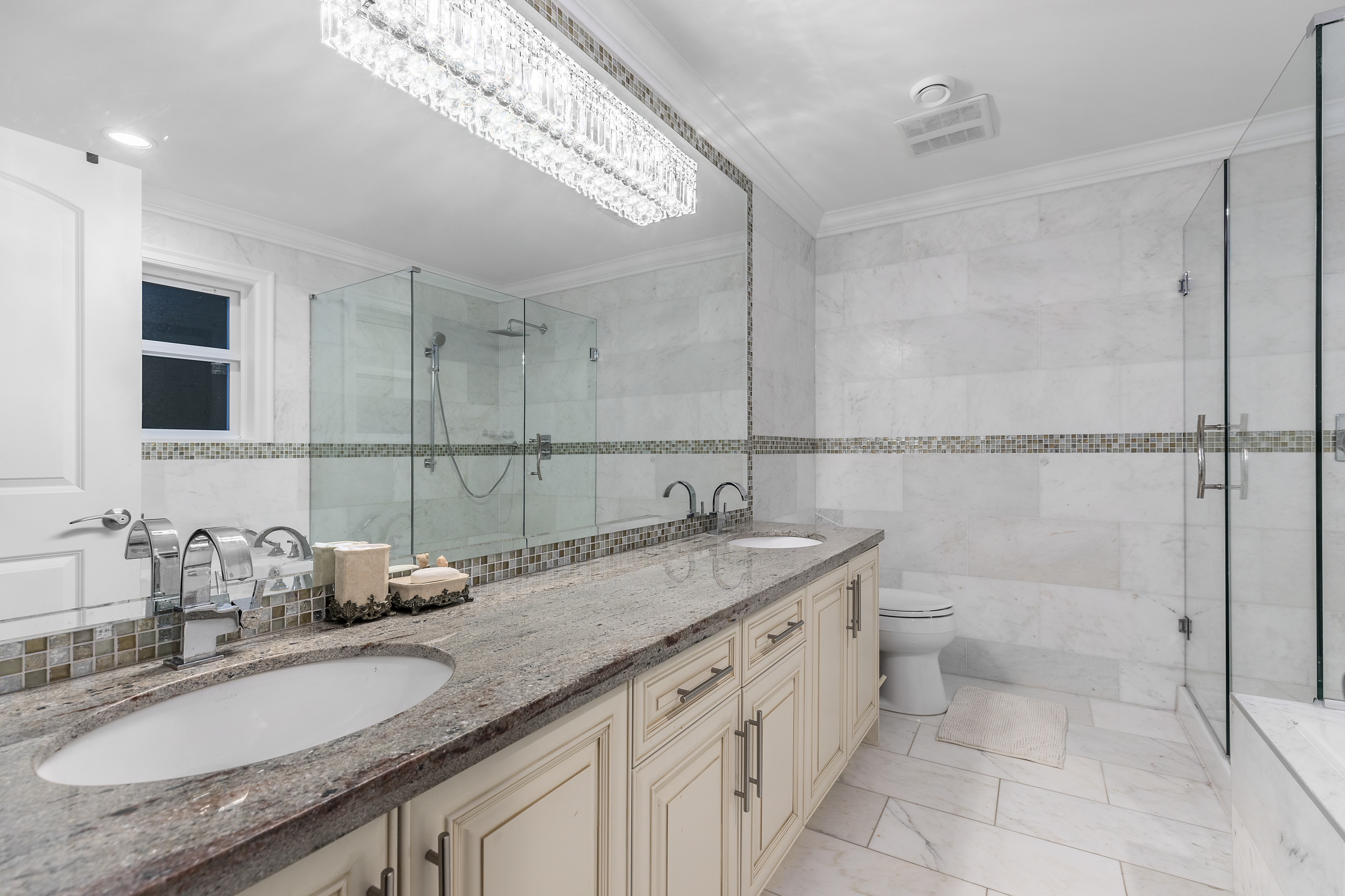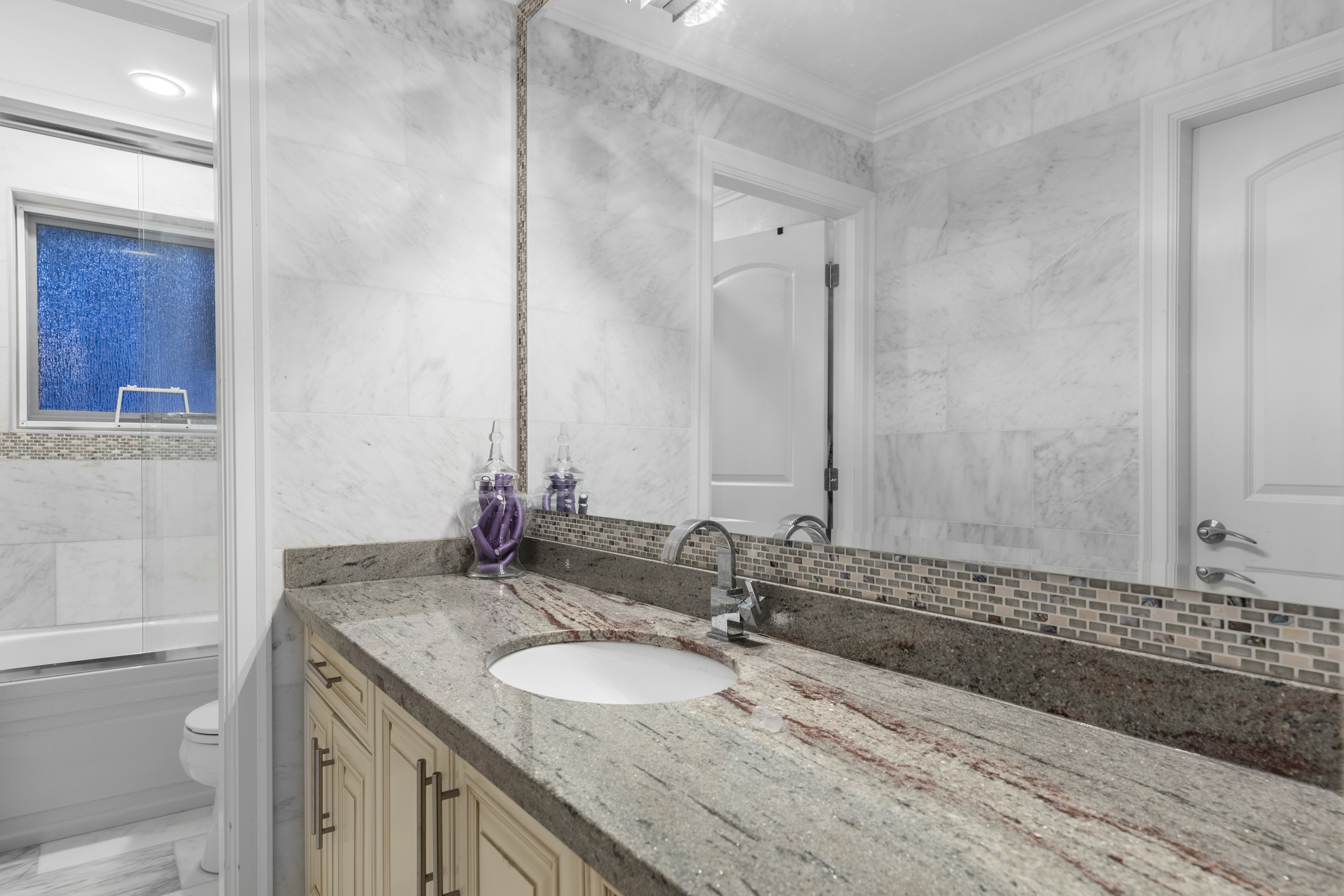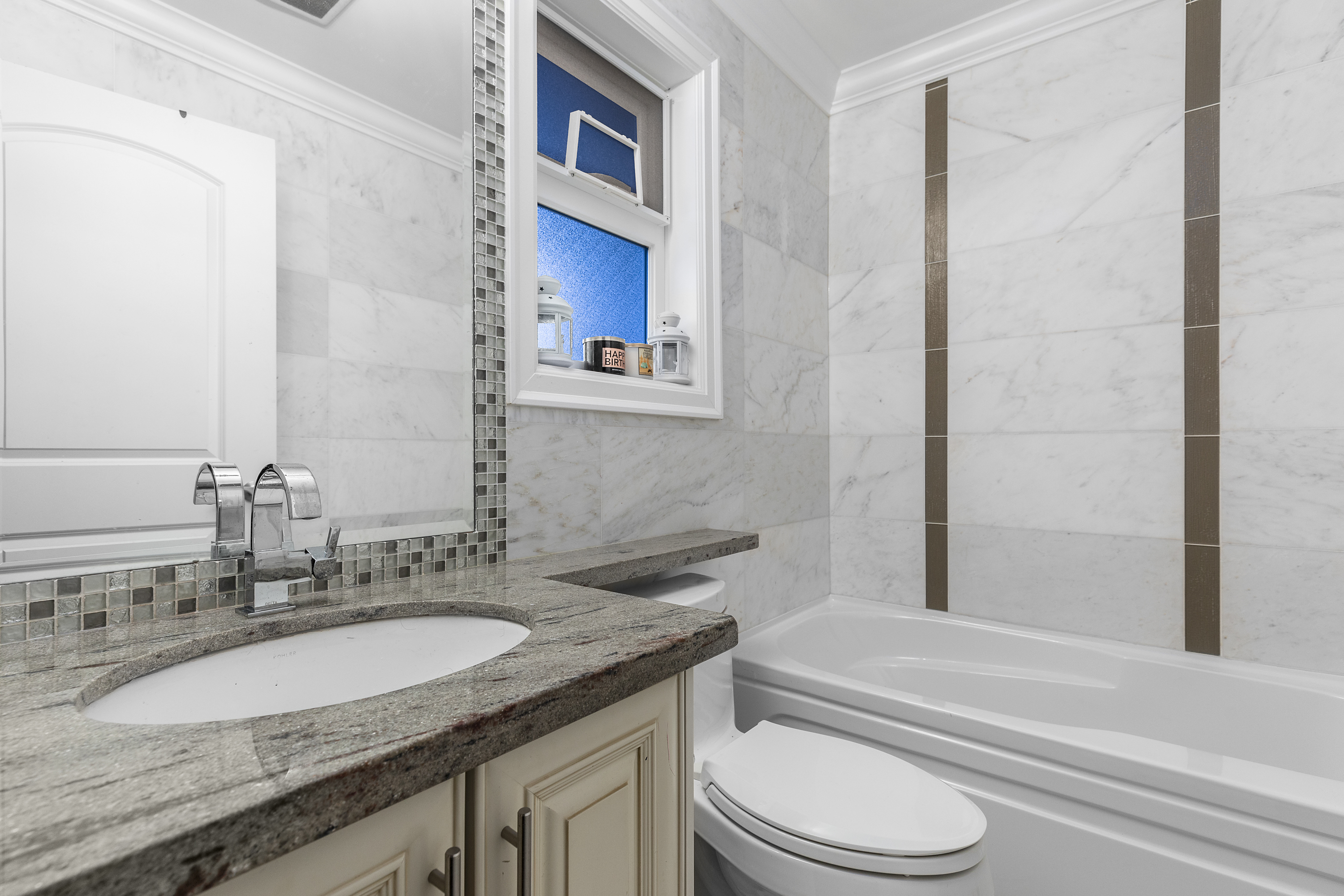 Beautiful 7 bedroom, 6 bathroom, 3 level home in the sought after SFU neighbourhood of Burnaby North. Enjoy over 4,800sqft of living on a lot spanning over 10,300sqft with in floor heating, A/C, central vacuum, hardwood flooring and a mudroom with a sink. Main level features a gorgeous waterfall feature, crystal chandeliers and a gourmet kitchen with stainless steel appliances and wok kitchen with outdoor access. Relish in 2 masters on the upper level each complete with a walk-in closet and luxurious ensuite, as well as 2 additional bedrooms with a connected washroom. Basement level offers 2 bedrooms suite with 4pc bath and a 1 bedroom suite complete with 4pc bath and shared laundry.