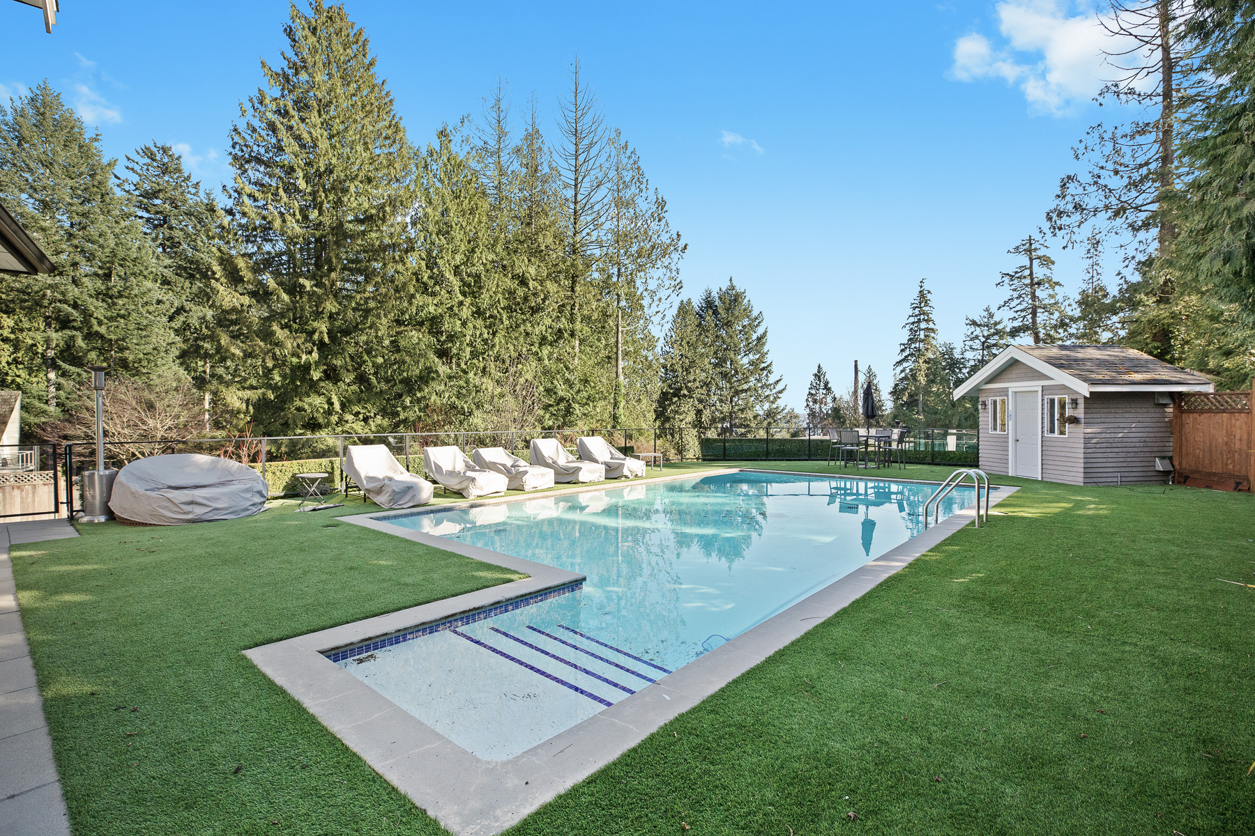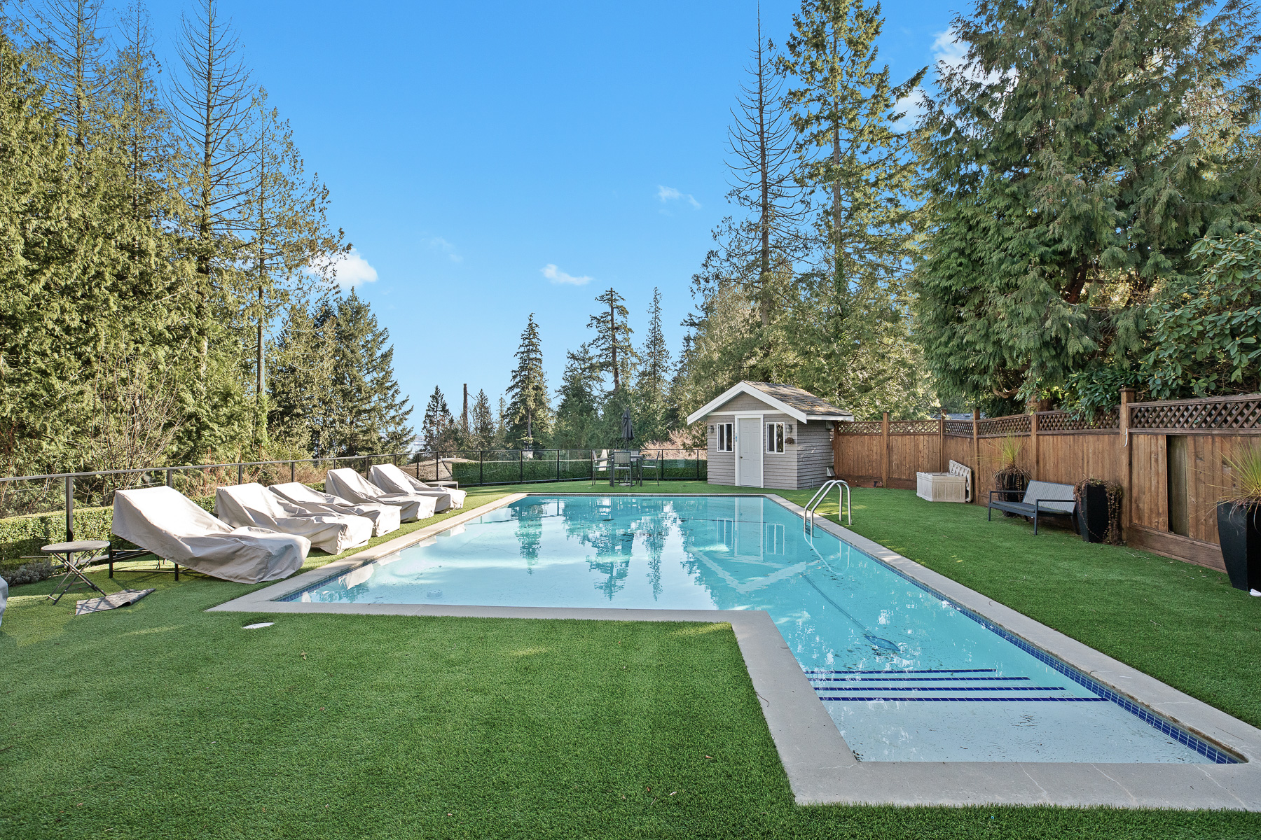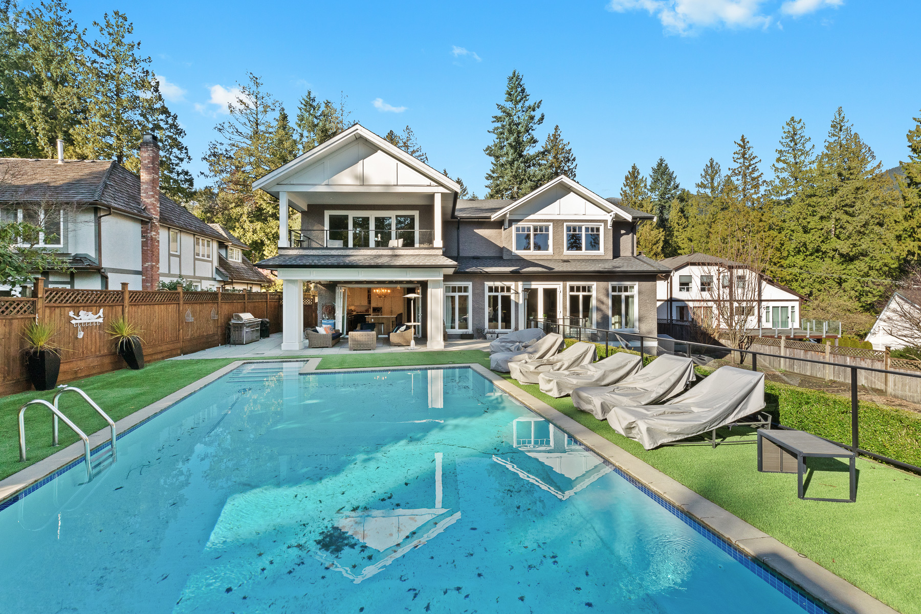Magnificent luxury home on .5 acre gated estate in West Van's Caulfeild neighbourhood. Stunning custom built 6600sqft residence featuring 5 beds, 6 baths on 3 levels of luxury living. Elegant living/family area, fully equipped Chef's kitchen open to park like rear garden, in ground swimming pool and gorgeous entertaining area with Peek A Boo Views of the Ocean. Exquisite finishing throughout with flowing Interior designed by acclaimed Canadian designer Kelly Deck, highlighted by designer chandeliers, crystal, marble, stone that contrast to warm hand stained oak floors. Formal dining room w/ butler's pantry ideal for entertaining. Lower level has a huge 25'x22' theatre/recreation room and a true wine cellar. Amazing location, minutes to the beach, Caulfeild Elementary and Caulfeild shopping centre.