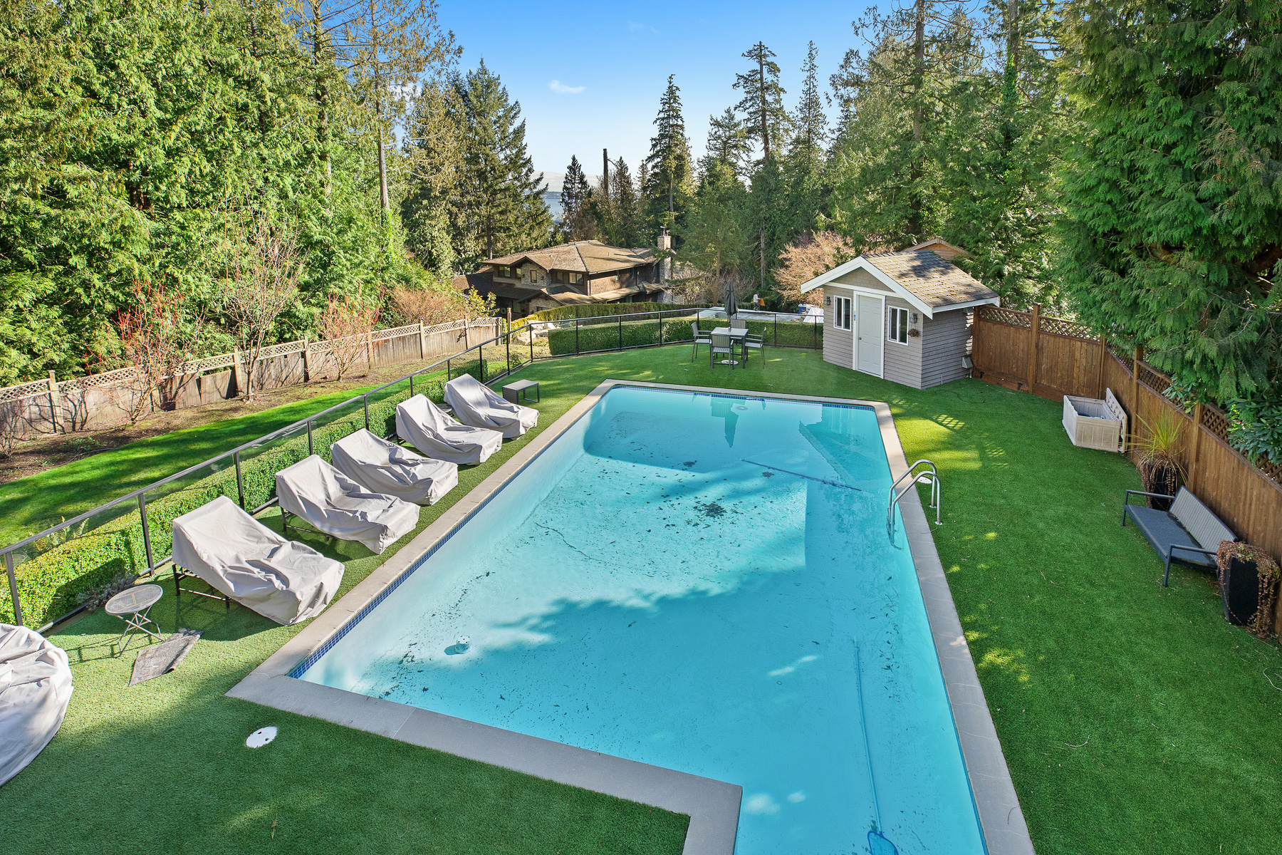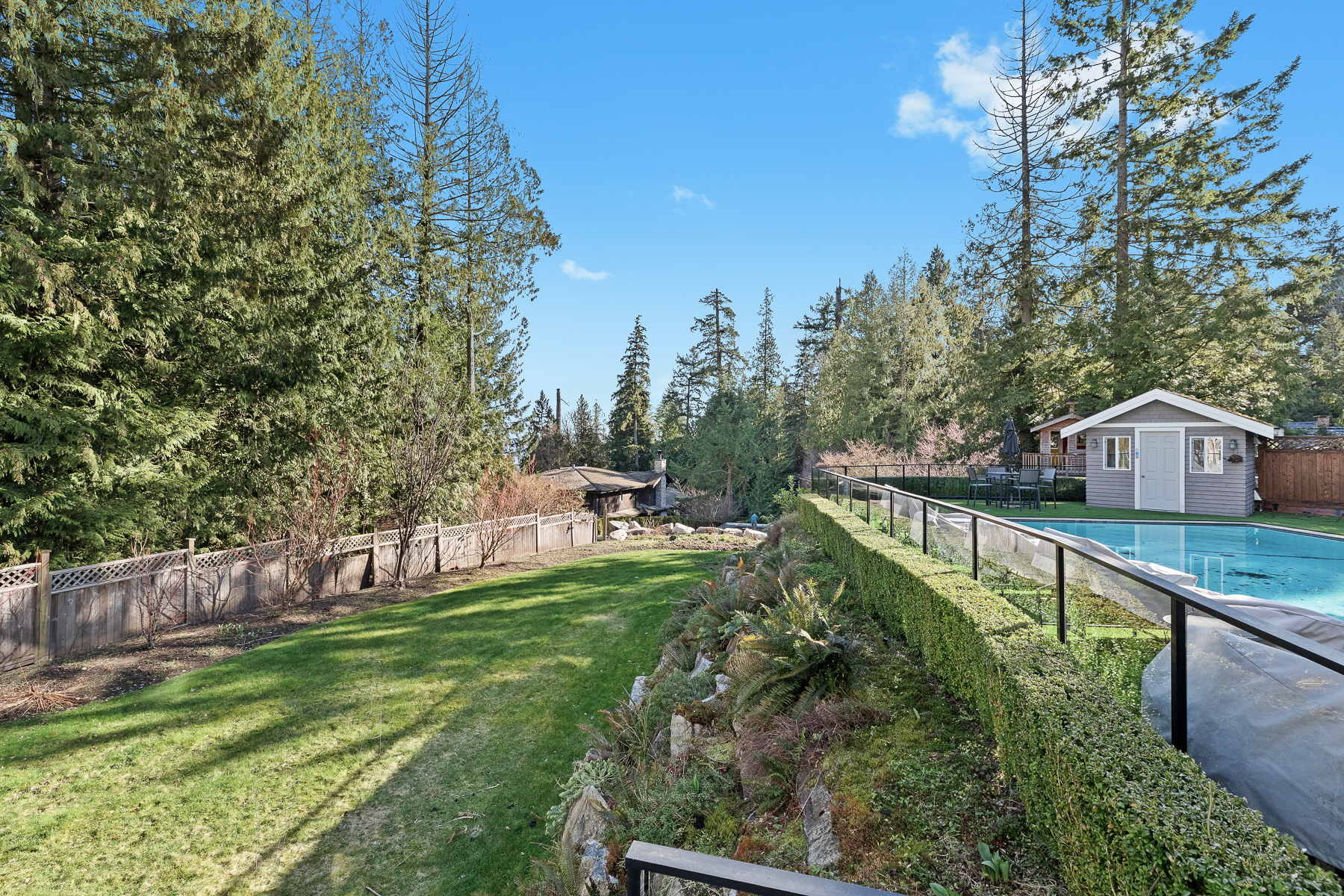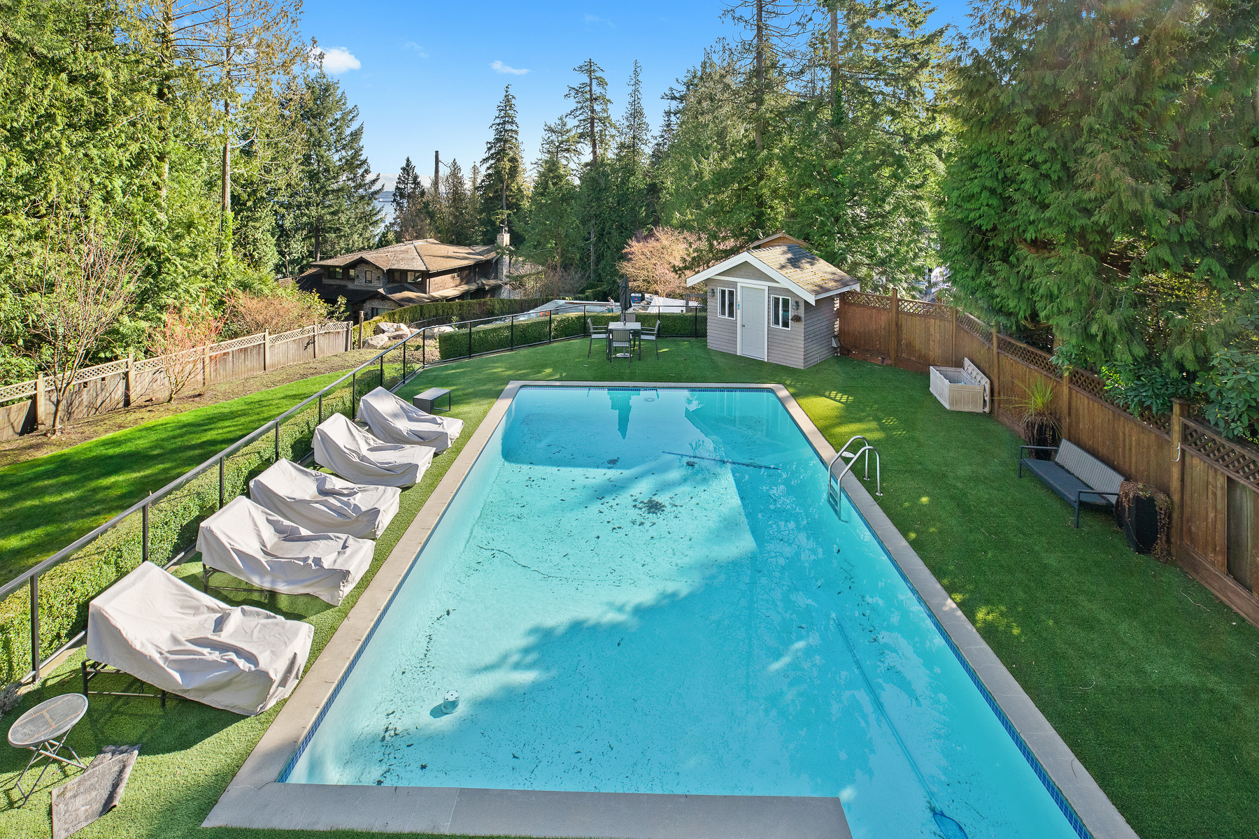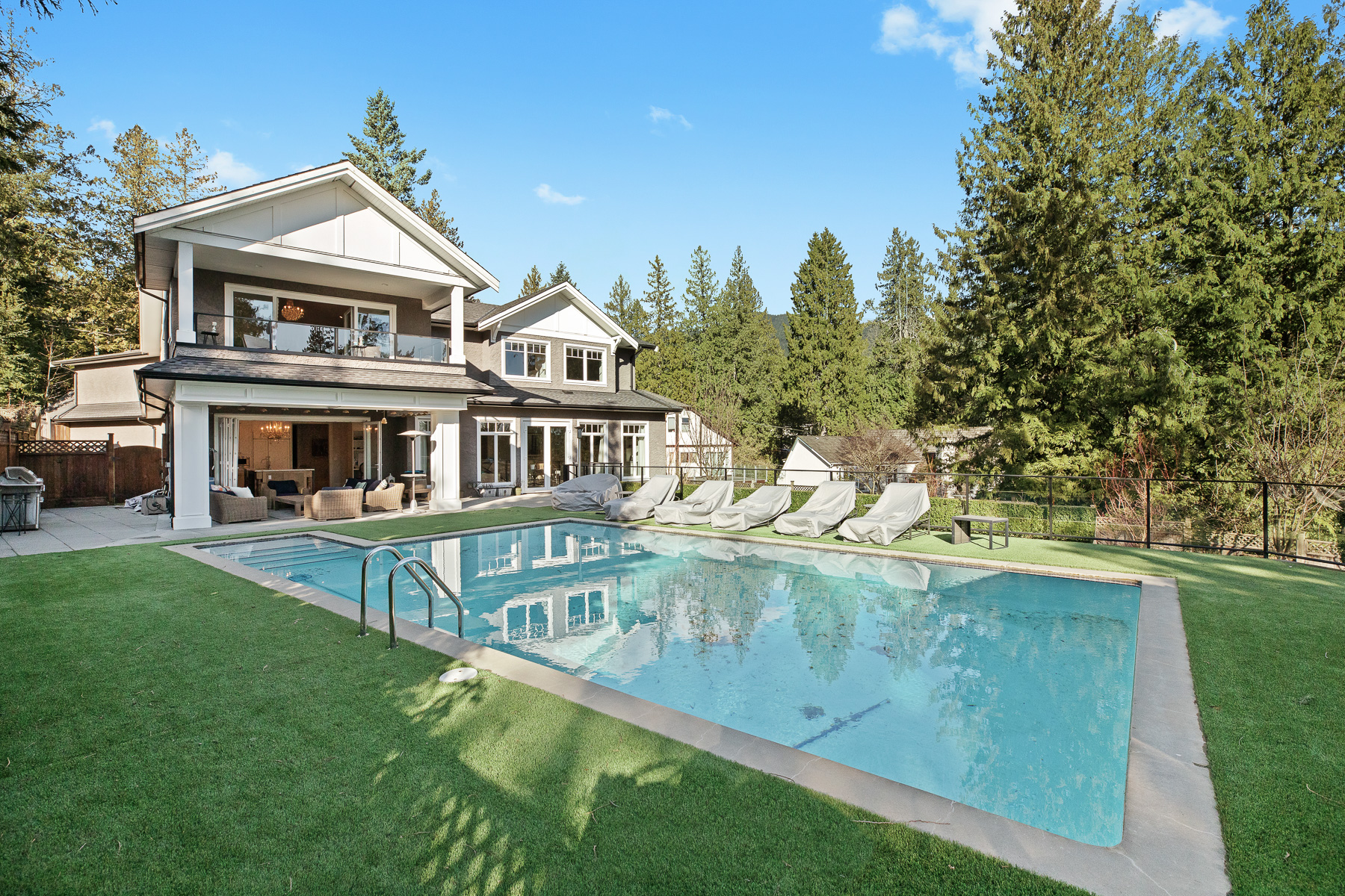 Magnificent luxury home on .5 acre gated estate in West Van's Caulfeild neighbourhood. Stunning custom built 6600sqft residence featuring 5 beds, 6 baths on 3 levels of luxury living. Elegant living/family area, fully equipped Chef's kitchen open to park like rear garden, in ground swimming pool and gorgeous entertaining area with Peek A Boo Views of the Ocean. Exquisite finishing throughout with flowing Interior designed by acclaimed Canadian designer Kelly Deck, highlighted by designer chandeliers, crystal, marble, stone that contrast to warm hand stained oak floors. Formal dining room w/ butler's pantry ideal for entertaining. Lower level has a huge 25'x22' theatre/recreation room and a true wine cellar. Amazing location, minutes to the beach, Caulfeild Elementary and Caulfeild shopping centre.