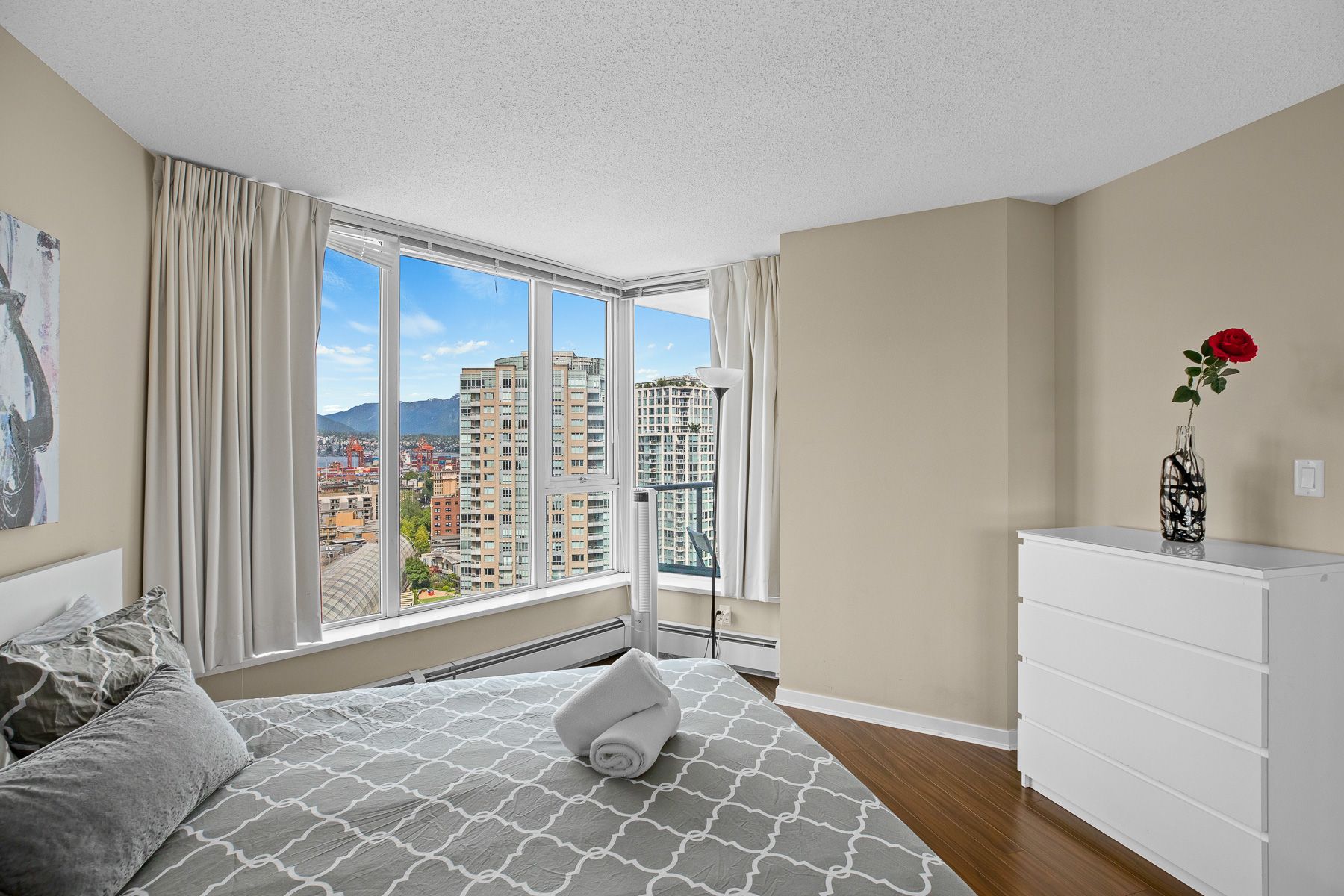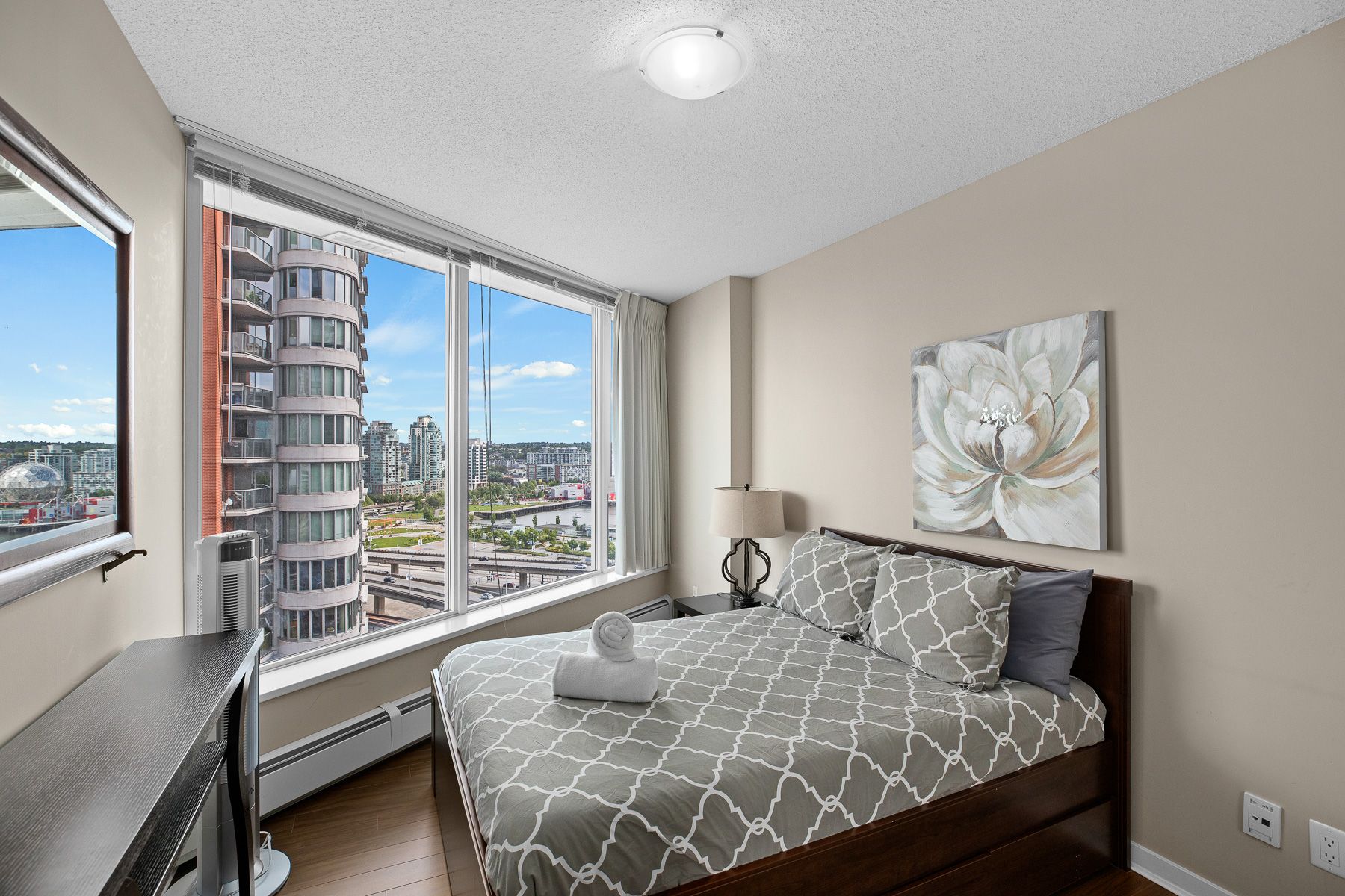 Beautiful 2 Bed, 2 Bath, 1 Solarium and 1 Den unit at the Espana with gorgeous views of the water, False Creek and mountains. This 933sqft unit features a spacious living room with stainless steel appliances, wine cooler, and laminate flooring. Amenities include a well managed clubhouse that includes an indoor pool, pool tables, theatre room, hot tub, sauna, library, fitness studio and much more. Steps away from SkyTrain station, shopping and entertainment experiences. NO RENTAL RESTRICTIONS!