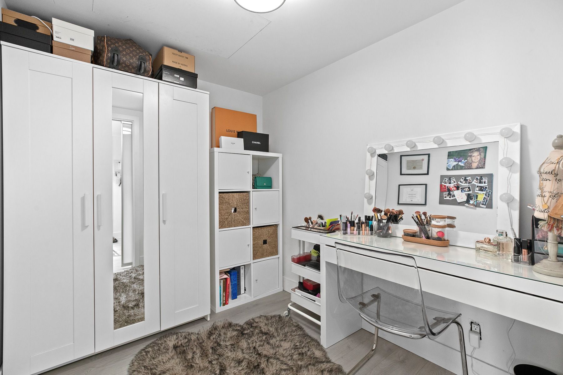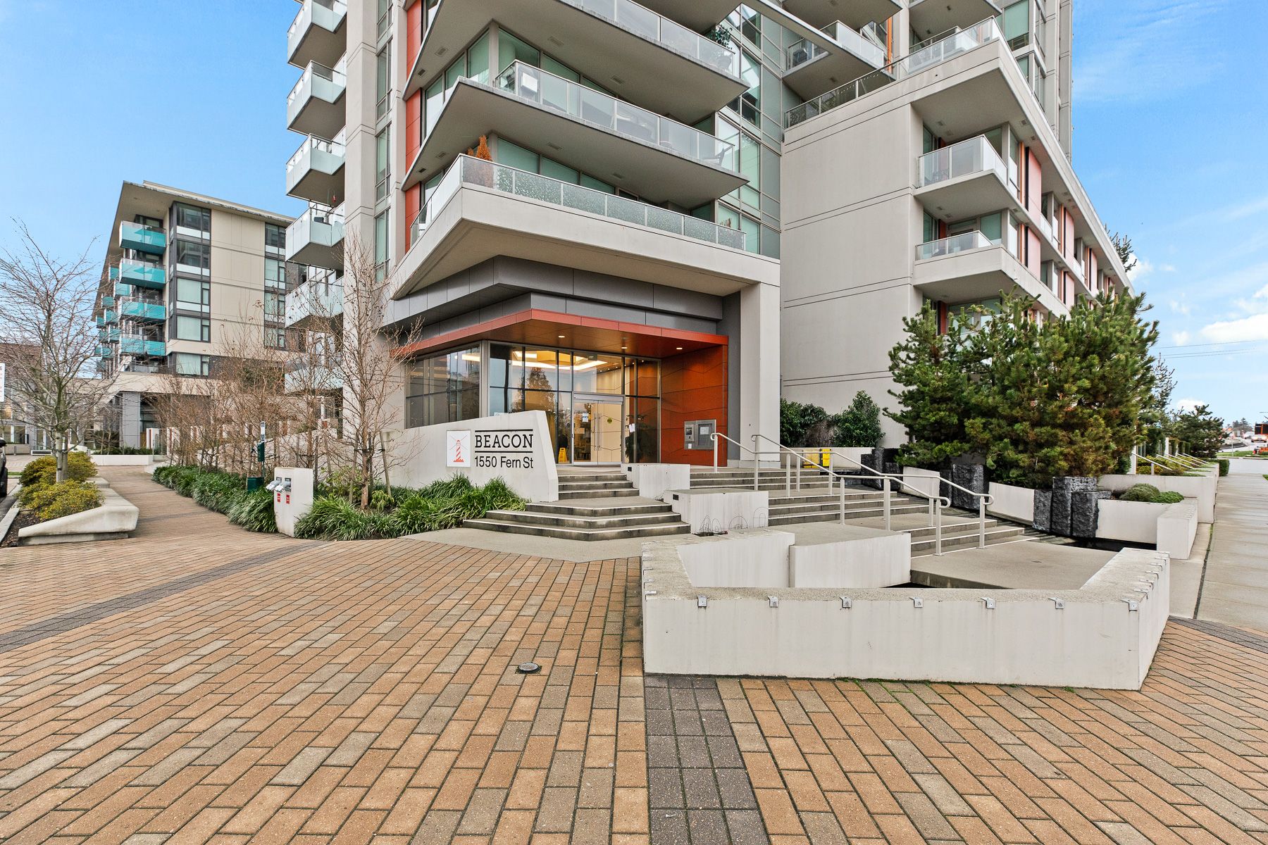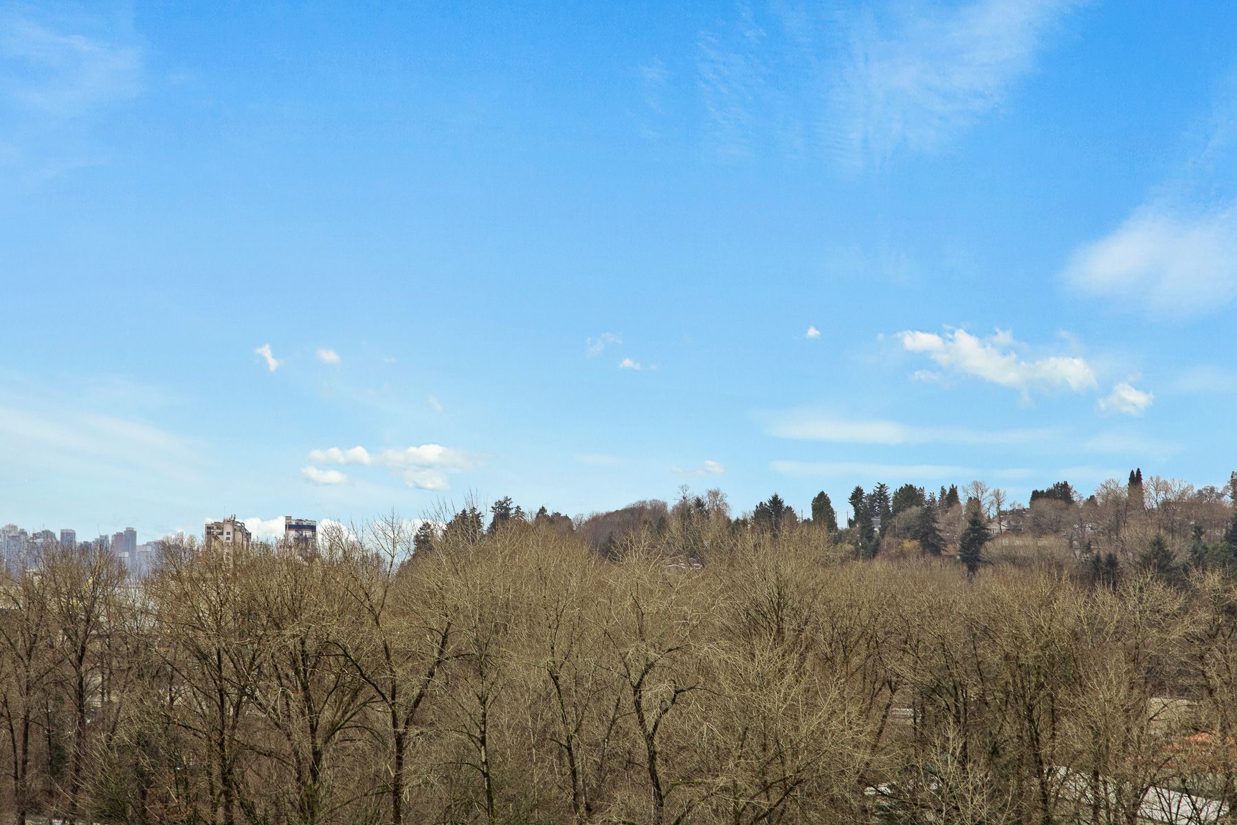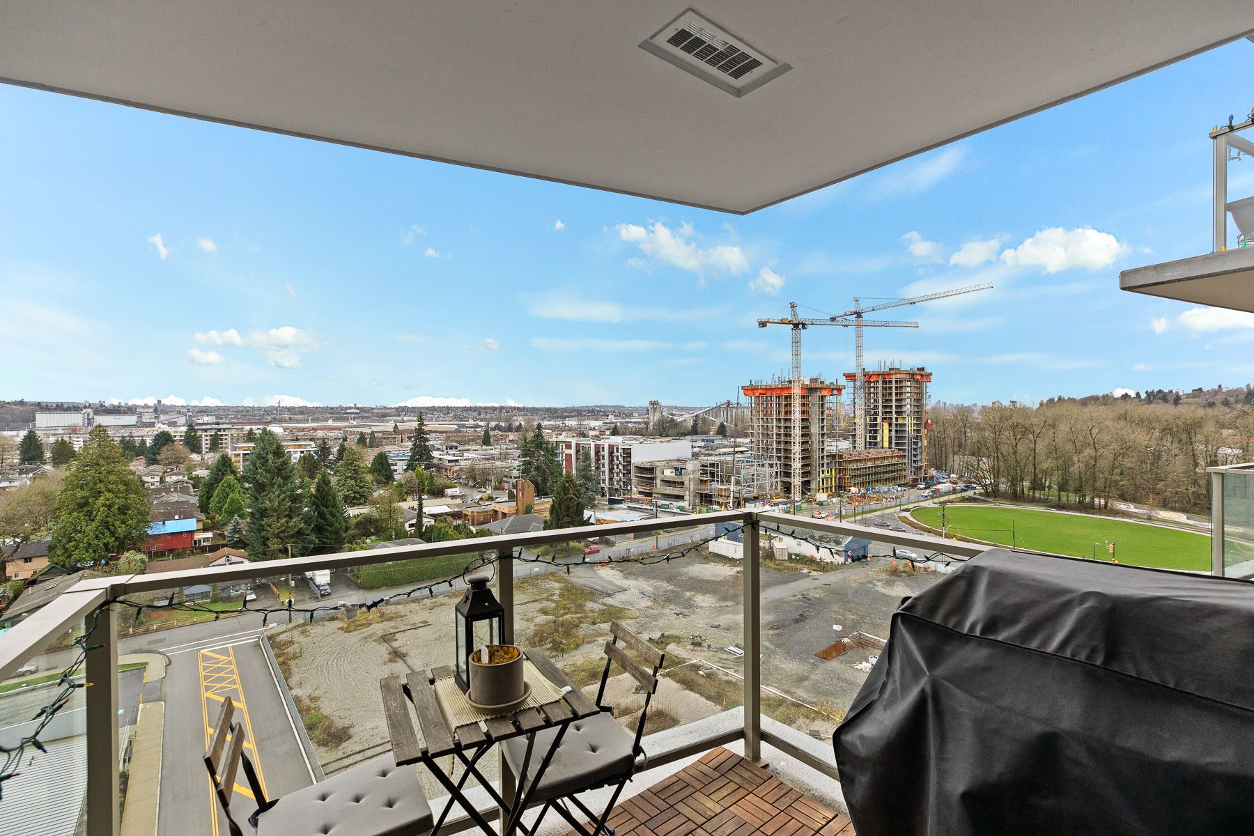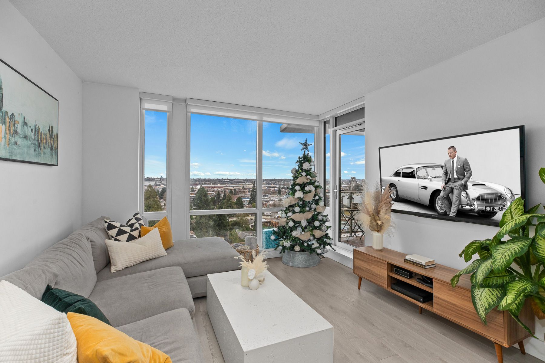 Step into this beautiful 1 bedroom and den, 1 bathroom 619sqft corner unit with city and mountain views! This spacious condo offers an open concept living space, plenty of cabinet storage and a spa-like bathroom. Enjoy high end finishes including stainless steel kitchen appliances, quartz countertops, floor to ceiling triple ply windows and new laminate flooring. Amazing 13,000sqft amenities centre that includes: health and fitness facility, 25M lap pool, lounge with a kitchen, spa, yoga, dance studio, sauna, steam room and guest suite.